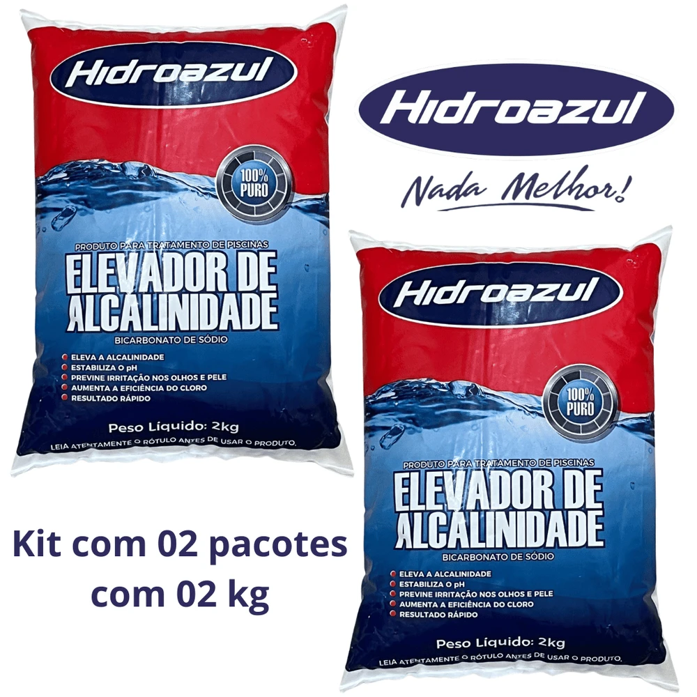 O Kit 02 und Elevador de Alcalinidade Hidroazul Pacote 02 kg ,é um produto destinado a elevar a alcalinidade das piscinas. Conseqüentemente o produto estabiliza o pH e evita gastos para correção, melhorando assim a eficiência dos demais produtos.