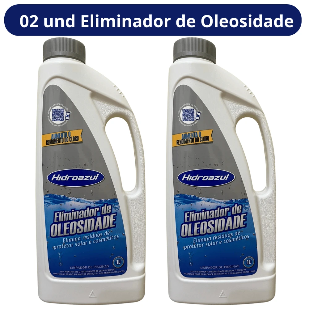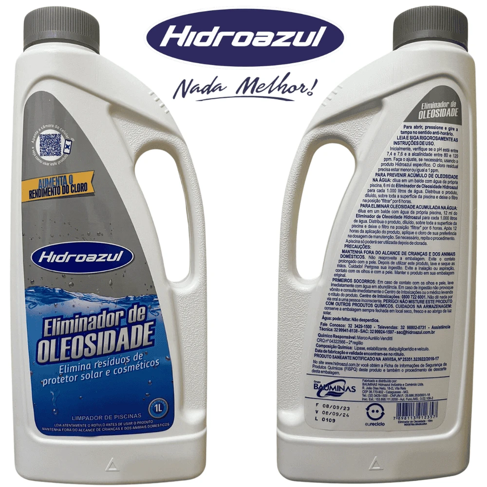 APLICAÇÃO: O Eliminador de Oleosidade é uma formulação enzimática, estabilizada que remove resíduos de óleos, protetores solares e cosméticos depositados pelos banhistas. Produto de origem natural, não irritante. Quando usado frequentemente impede à formação da camada de óleo sobrenadante na superfície da água. Melhora a capacidade de filtração e a ação desinfetante do cloro.