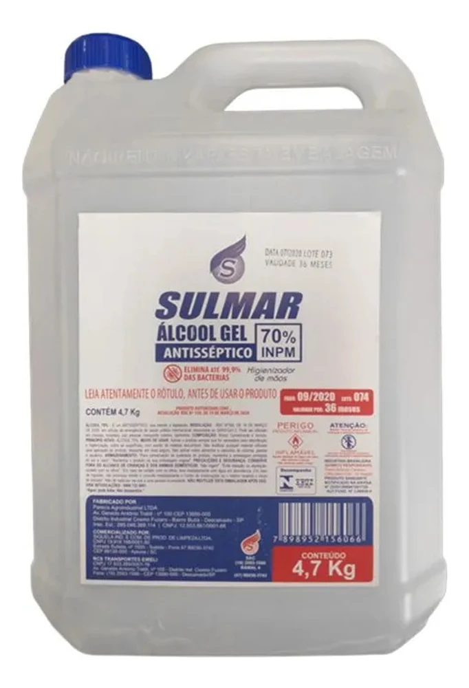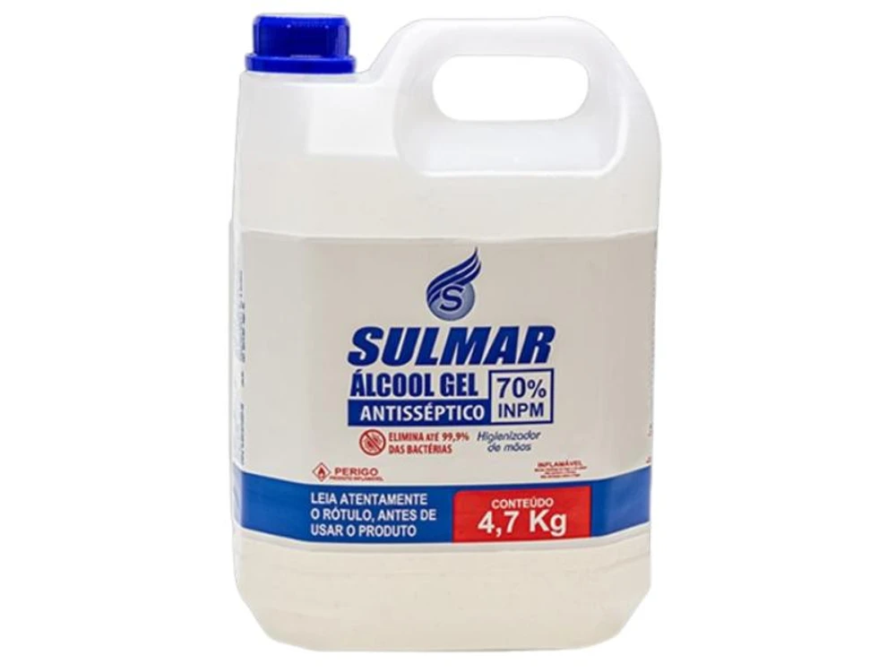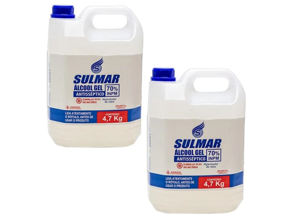 02 Und Alcool Gel 70º 5l Sulmar Antisséptico E Bactericida Fragrância Neutra