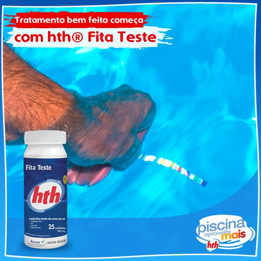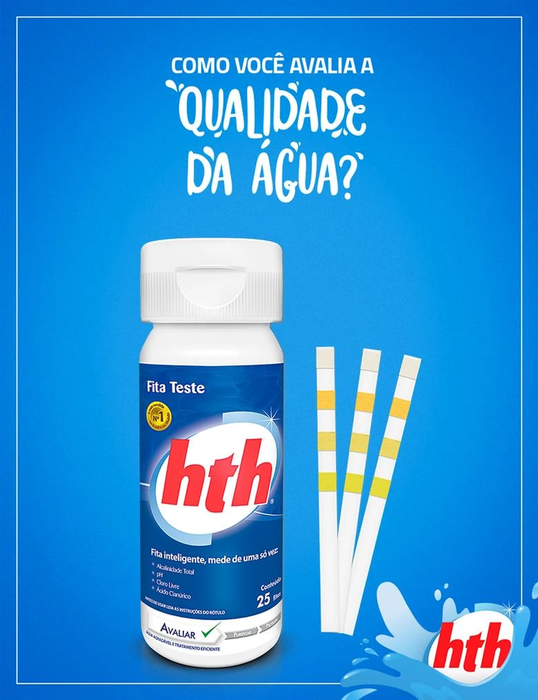 A HTH® FITA TESTE AVALIA DE UMA SÓ VEZ OS PARÂMETROS DE ALCALINIDADE, PH, CLORO LIVRE E ÁCIDO CIANÚRICO. É UM ITEM FUNDAMENTAL NO TRATAMENTO DA ÁGUA DA PISCINA, POIS ORIENTA O AJUSTE DOS PARÂMETROS ESSENCIAIS PARA UM TRATAMENTO EFICIENTE. ESTE PRODUTO DE ALTA QUALIDADE E DE FÁCIL UTILIZAÇÃO, TRAZENDO RESULTADOS RAPIDAMENTE, CADA FITA MEDE UMA ÚNICA VEZ!