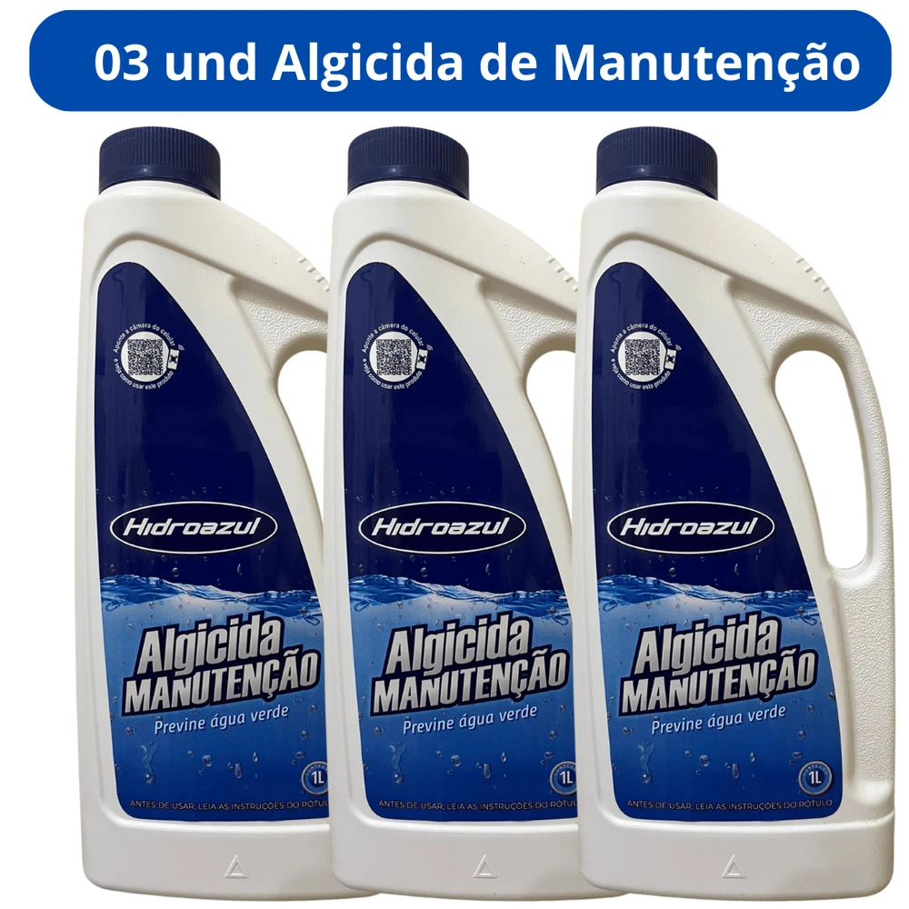 03 UND ALGICIDA DE MANUTENÇÃO HIDROAZUL FRASCO DE 01 LITRO