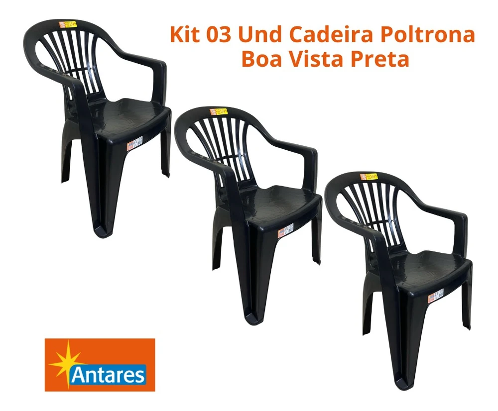 03 Cadeira Poltrona Boa Vista 120kg Preta Antares