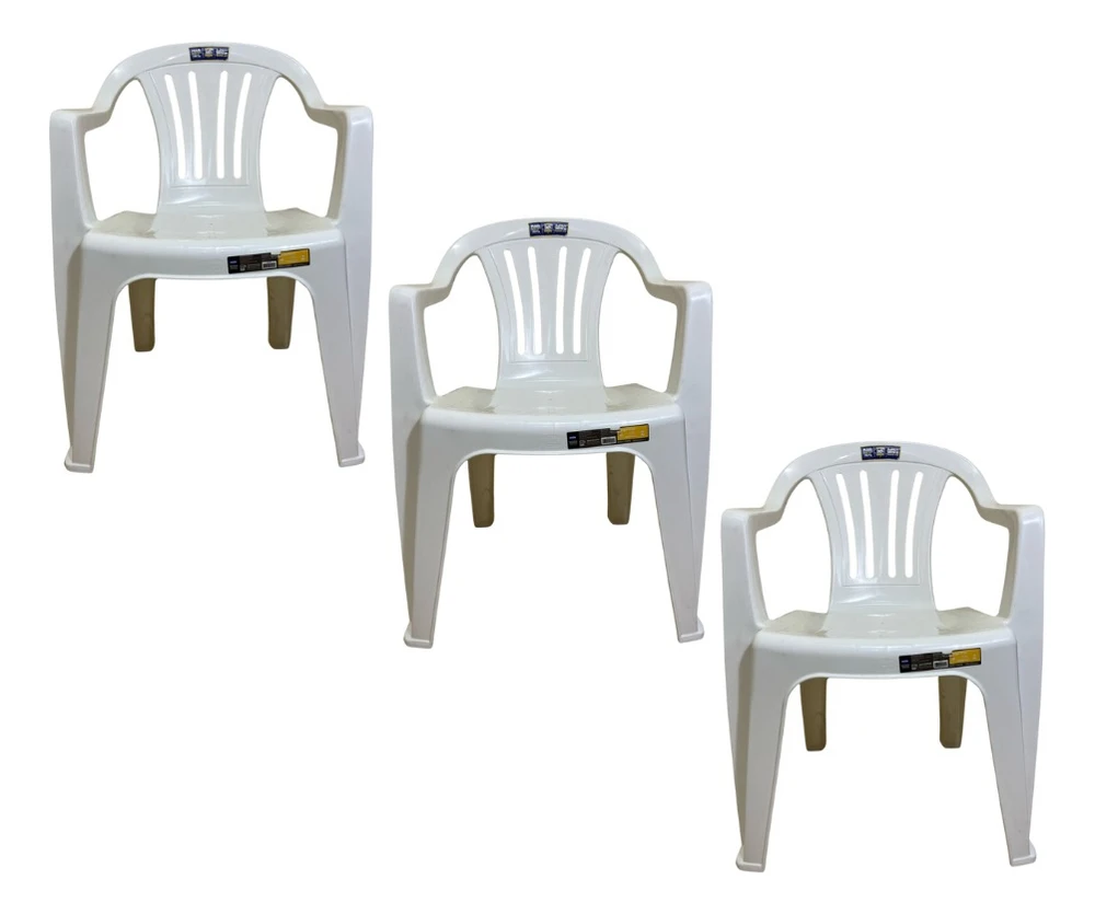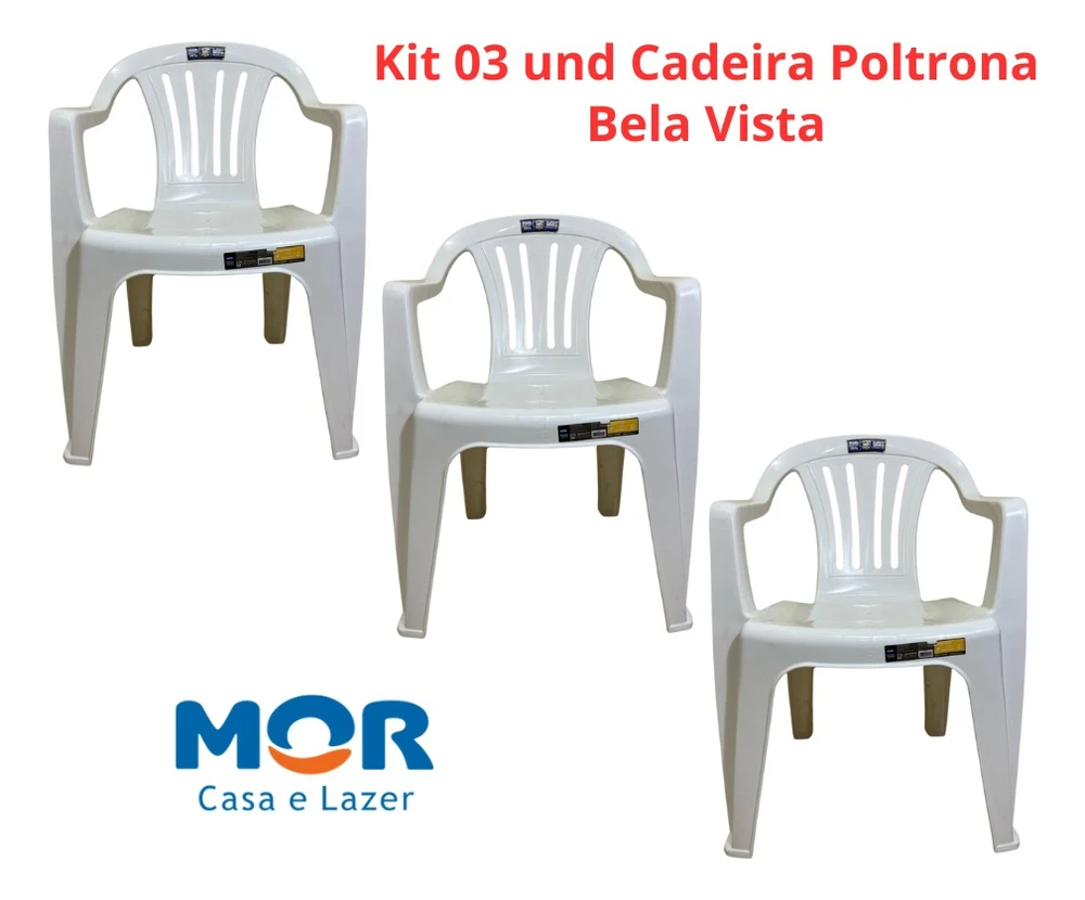 03 Cadeira Poltrona Plástico Mor Resistente Braço Bela Vista