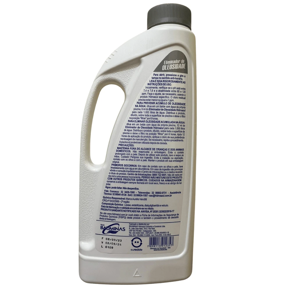 APLICAÇÃO: O Eliminador de Oleosidade é uma formulação enzimática, estabilizada que remove resíduos de óleos, protetores solares e cosméticos depositados pelos banhistas. Produto de origem natural, não irritante. Quando usado frequentemente impede à formação da camada de óleo sobrenadante na superfície da água. Melhora a capacidade de filtração e a ação desinfetante do cloro.