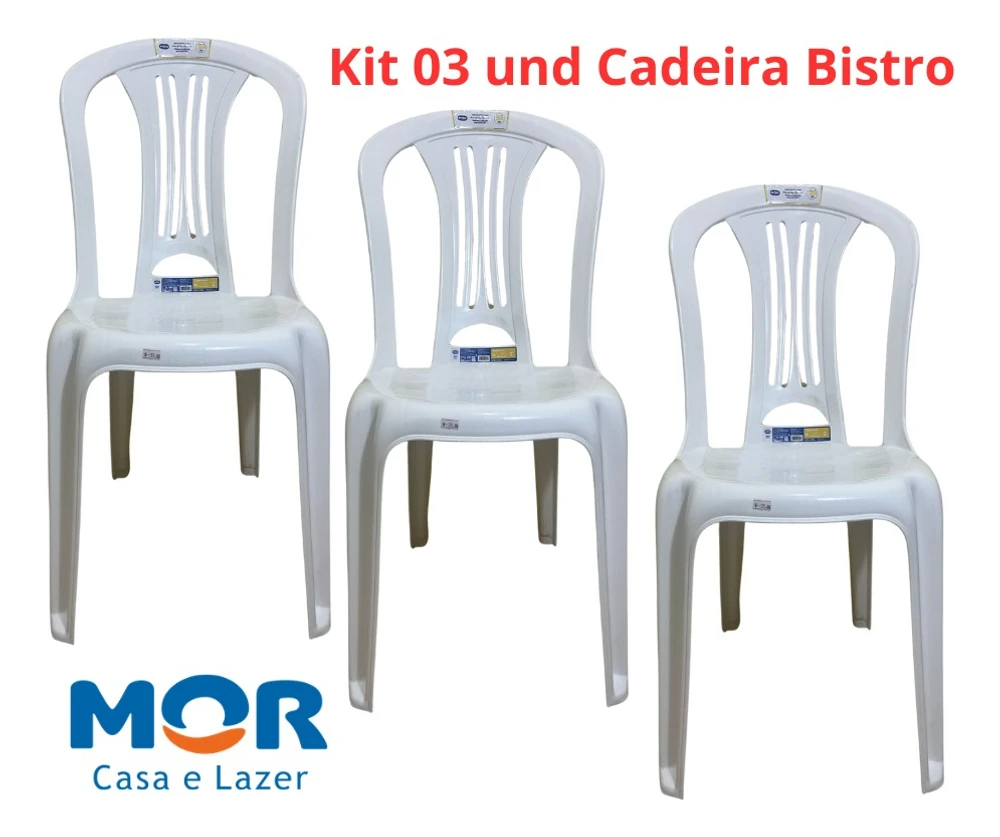 03 Und Cadeira Plastica Sem Braço Bistro Mor