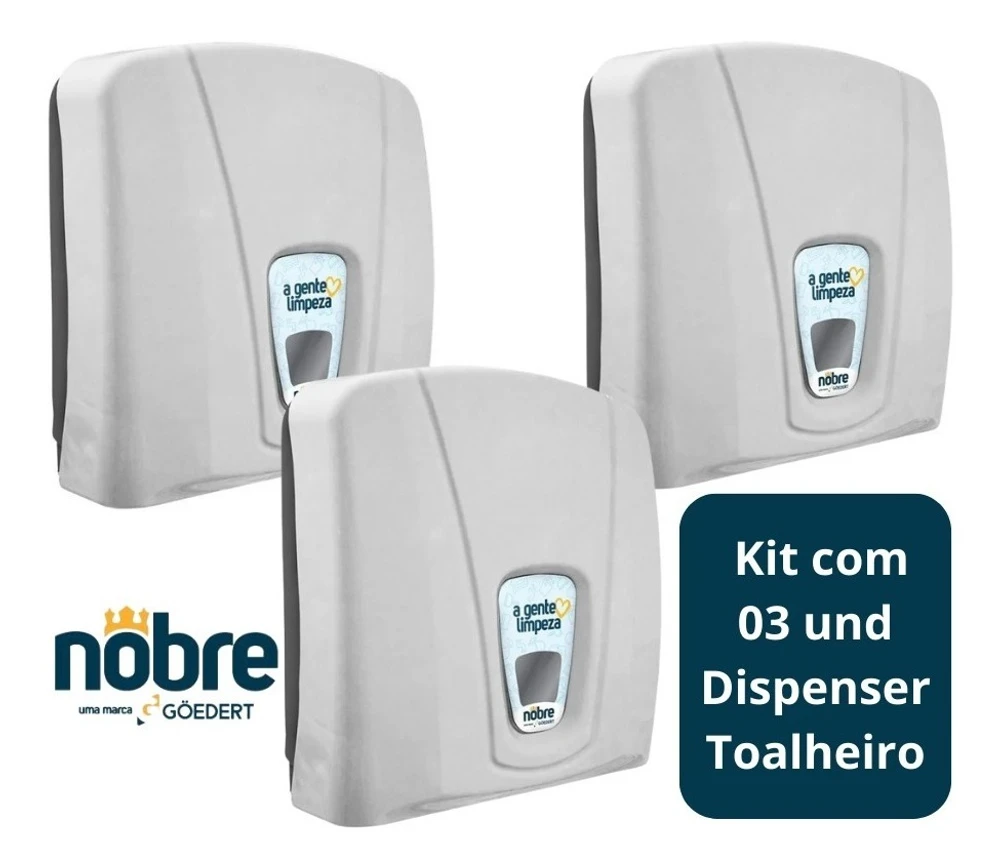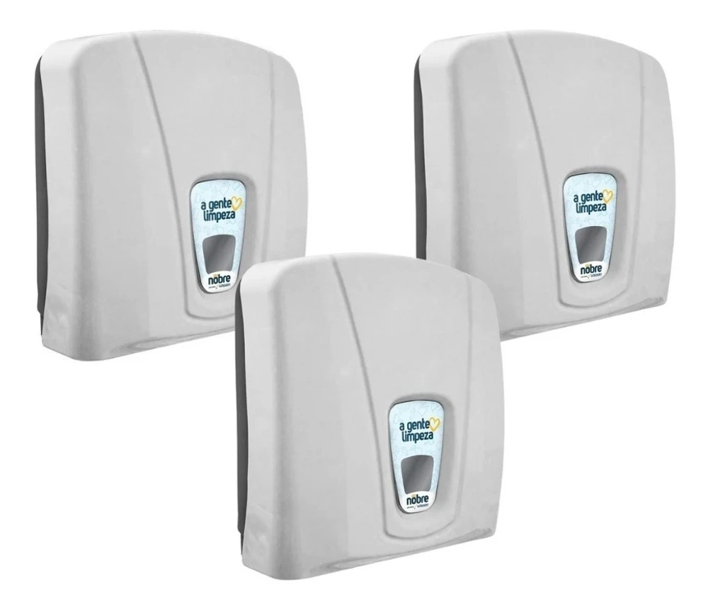 KIT CONTENDO 03 UND DE DISPENSER TOALHEIRO NOBRE.Dispenser Porta Papel Higiênico Parede Banheiro Rolão Branco NOBRE CITYO Dispenser para papel toalha de fixação em parede com design moderno e inovador, fabricado com plástico reforçado, sendo resistente, duradouro e com pouca ou quase nenhuma necessidade de manutenção. O dispenser é para uso em empresas, clínicas, hotéis, bares, academias, cafés, Bibliotecas, clubes, salão de beleza, condomínios, Igrejas, residências e todos os lugares com acesso ao público com a finalidade de promover a higienização necessária. Os equipamentos da linha Invoq da premisse são importantes fontes de economia fazendo a quantidade correta do papel saia evitando assim desperdíciosESPECIFICAÇÕES DE ACORDO COM A FABRICANTEComo os rolos são grandes e,unto á economia do dispenser, é muito comum um rolo durar bastante tempo, não precisando ser colocado um novo todos os dias. Claro que isso depende do fluxo de uso do produto. Escolha de preferência os dispensadores com sistema de rolamento independente, que facilitam a retirada do papel. como o rolo é muito pesado, o papel após sua retirada pode ficar picotando, o rolamento independente impede que isso aconteça.DESCRIÇÃO:- Papel Higiênico do Tipo Rolão.- Produzido em material de alta qualidade.- Para papel higiênico rolão de 200m a 500m.- Sistema de rolamento independente. Muito mais fácil extração do papel.- Fechamento híbrido, com abertura com chave ou manual- Medidas: 28,6 x 31,3 x 12,8 cm