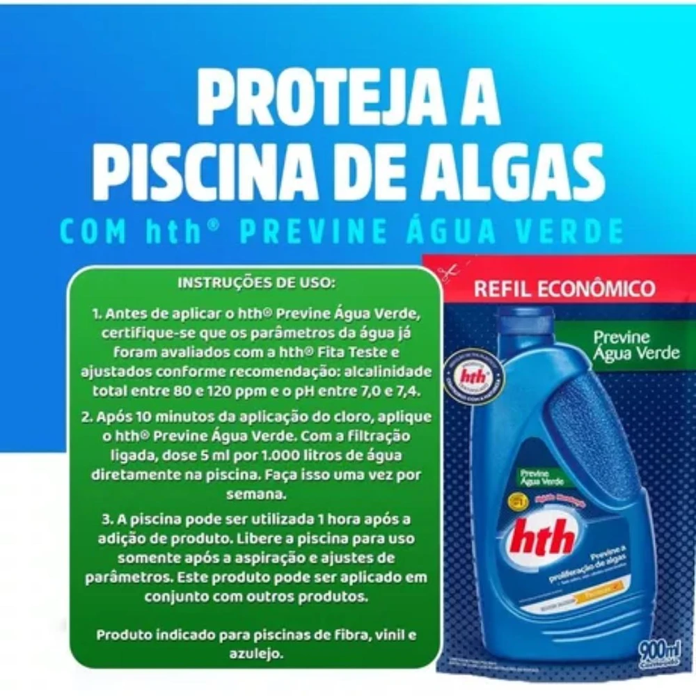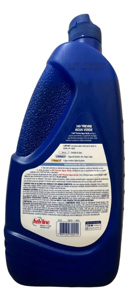- O Algicida Manutenção Previne Água Verde hth é compatível com outros produtos químicos para tratamento de piscinas.