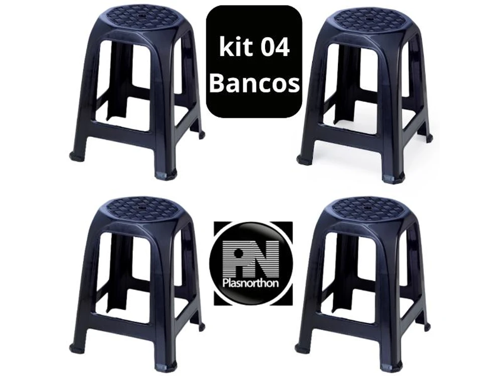 04 UND Banco Plástico Banqueta Resistente Suporta 100KG