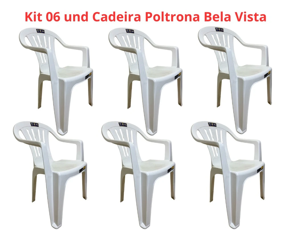 06 Cadeira Poltrona Plástico Mor Resistente Braço Bela Vista