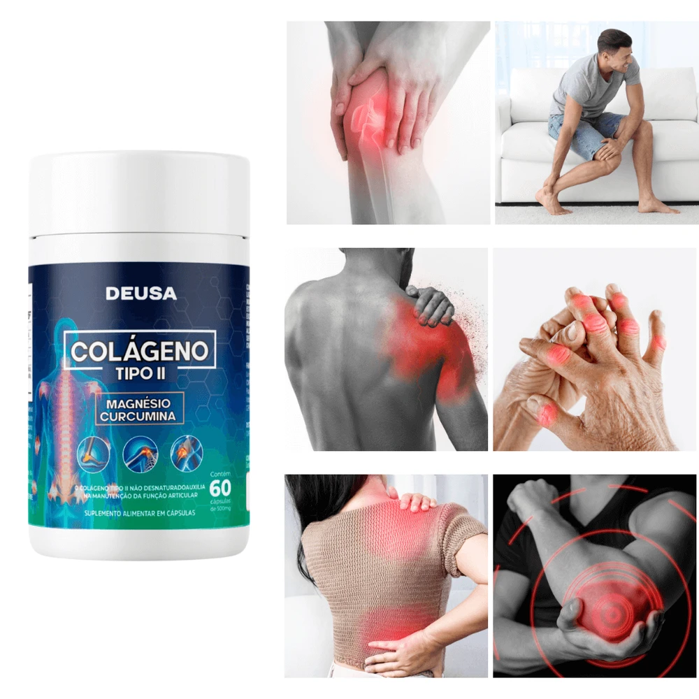 Na Deusa Suplementos, nos comprometemos em oferecer produtos da mais alta qualidade, formulados com ingredientes premium e fabricados seguindo os mais rigorosos padrões de segurança e qualidade. Nosso suplemento vitamínico de colágeno tipo II, cúrcuma e magnésio é mais uma prova desse compromisso, projetado para ajudar você a alcançar seus objetivos de saúde e bem-estar de forma natural e eficaz.