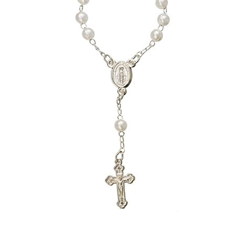 Mini Terço Dezena com contas de pérola branca de 5mm.