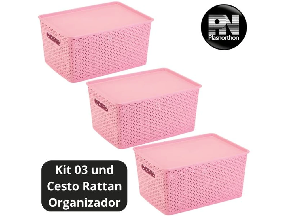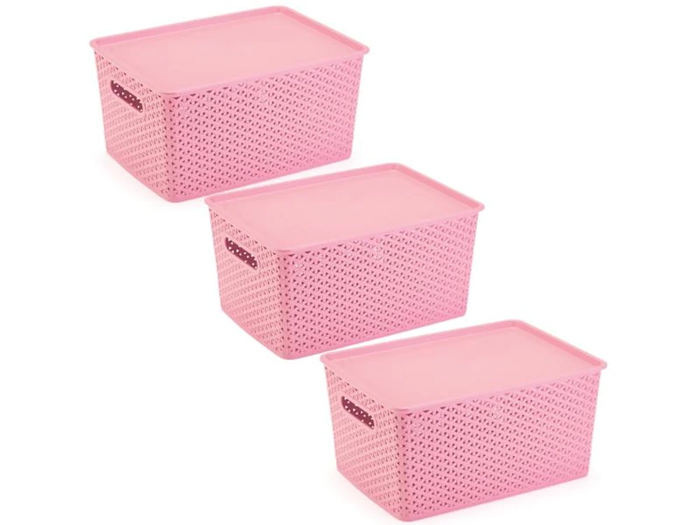 Kit 3 Caixas Organizadoras Da mesma Cor Com Tampa Grande 15 Litros Rattan.