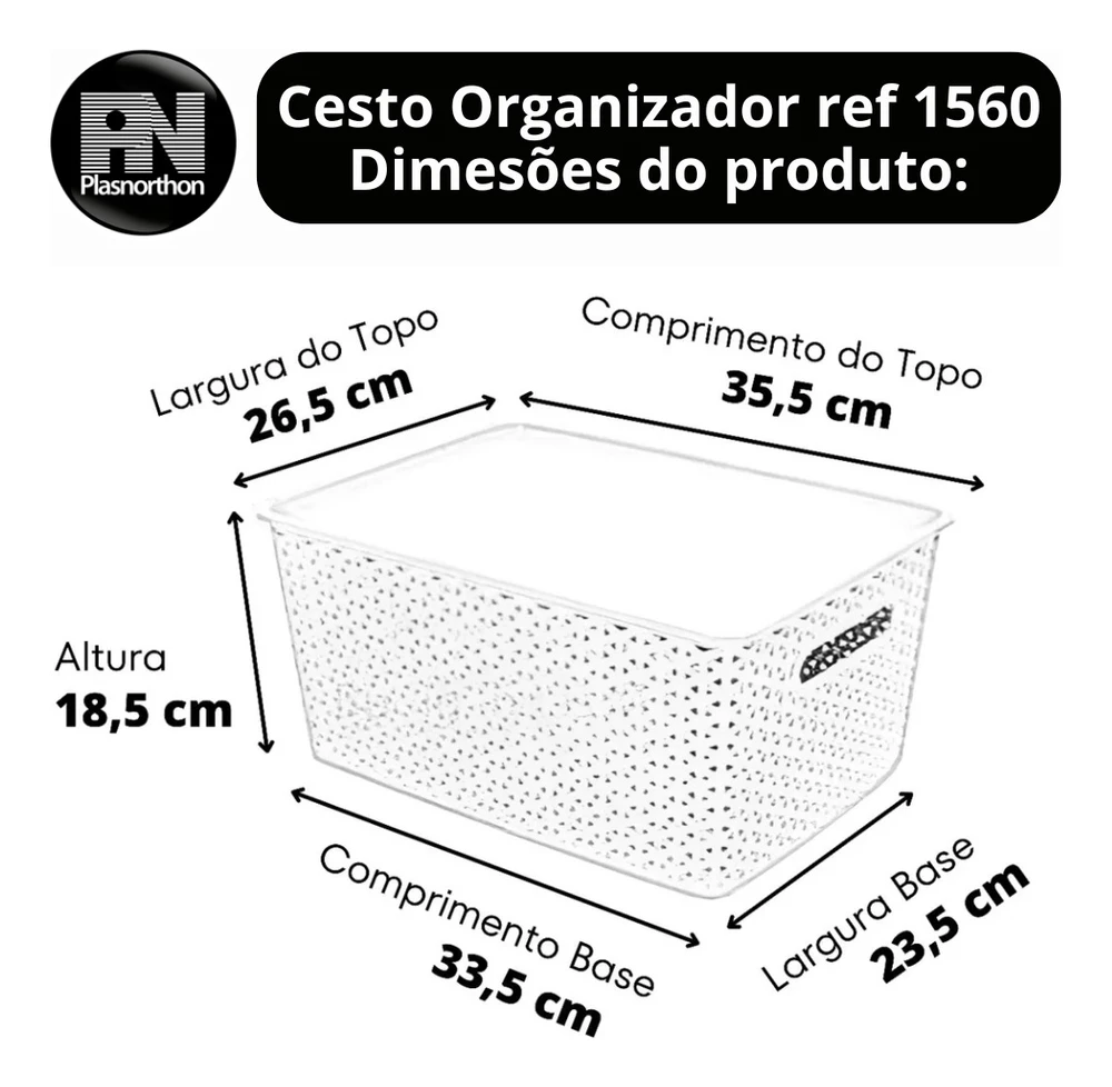 Dimensões: 35,5 cm Comprimento, 26,5 cm Largura e 18,5 cm Altura;