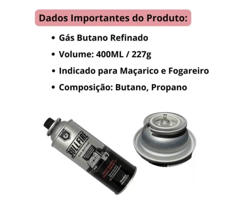 A lata contém 400 ml numa composição de butano e propano o que garante mais estabilidade na variação de temperatura e uma maior durabilidade. Além disso, minimizando as impurezas e os resíduos para uma combustão mais limpa e sem obstruções.