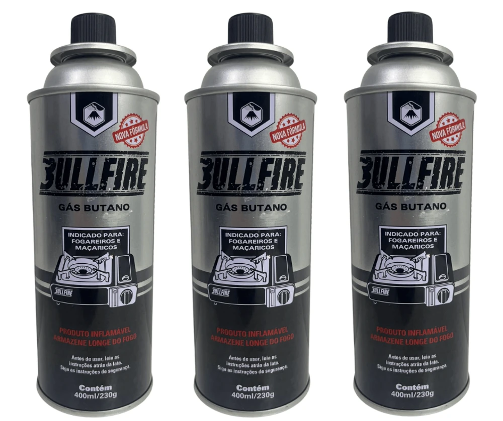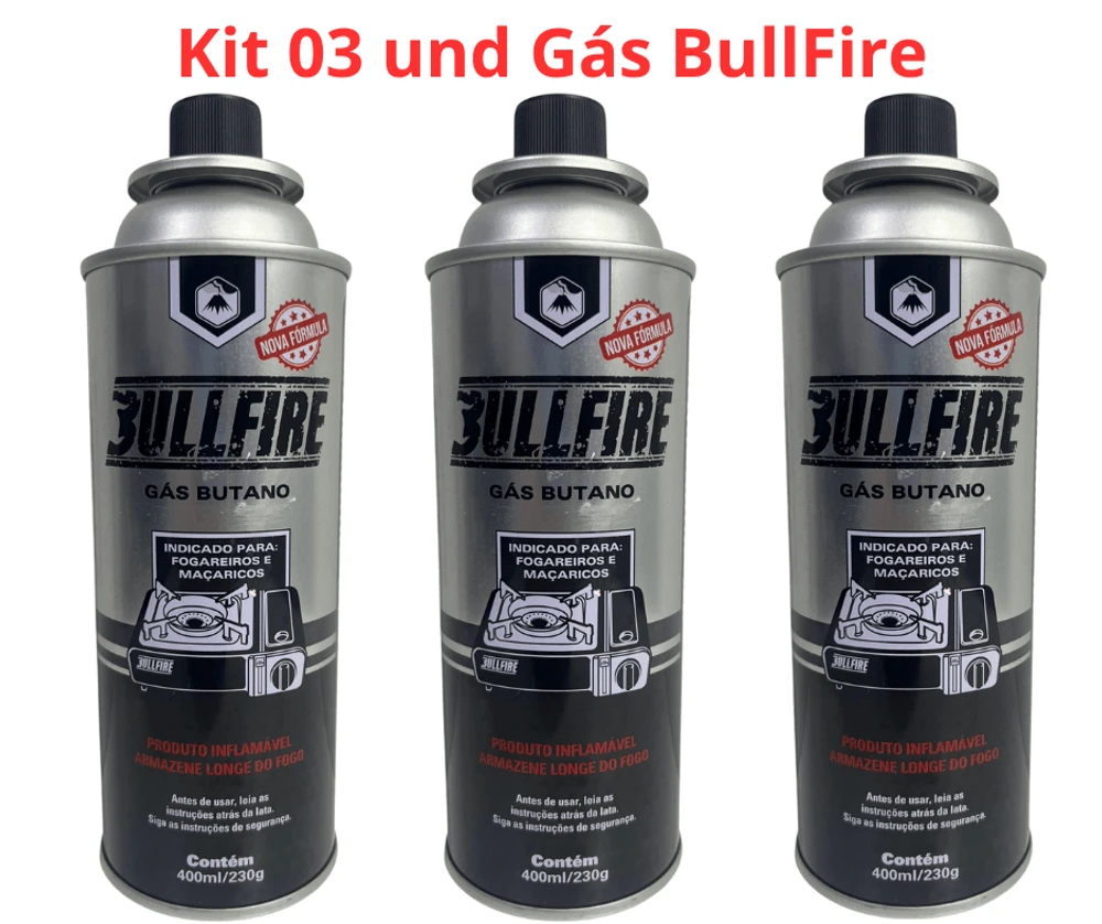 Kit 03 Und Gás Butano Bullfire Volcano Para Maçarico Culinário 400ml