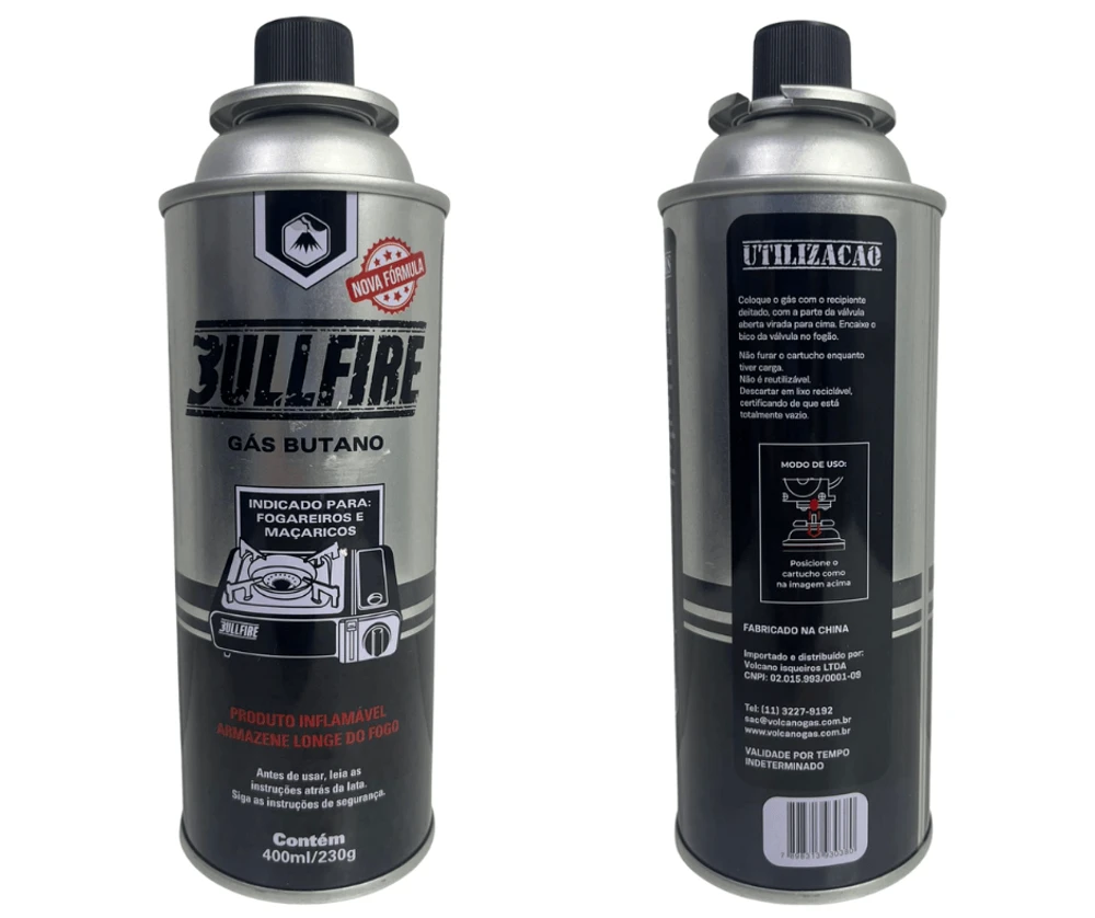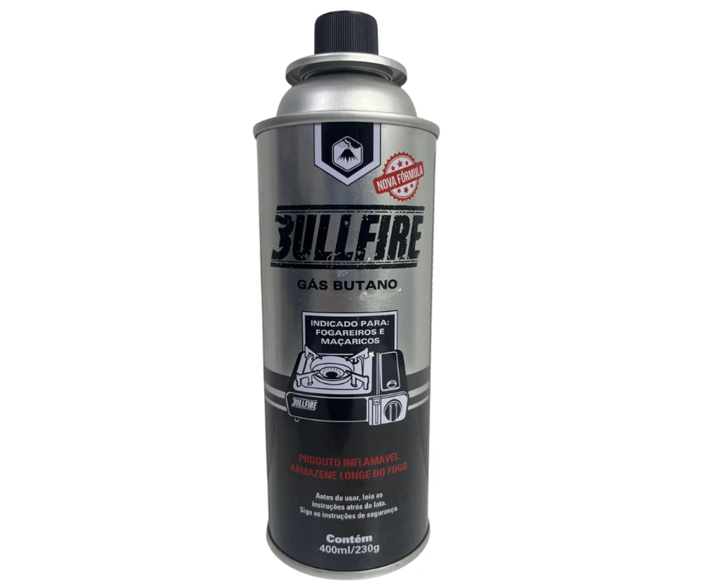 Gás Butano Bullfire da Volcano é um gás ideal para ser utilizado em maçaricos culinários e fogareiro portáteis. A lata é equipada com sistema uma tecnologia anti-explosão que confere segurança permitindo o engate e desengate sem vazamentos.