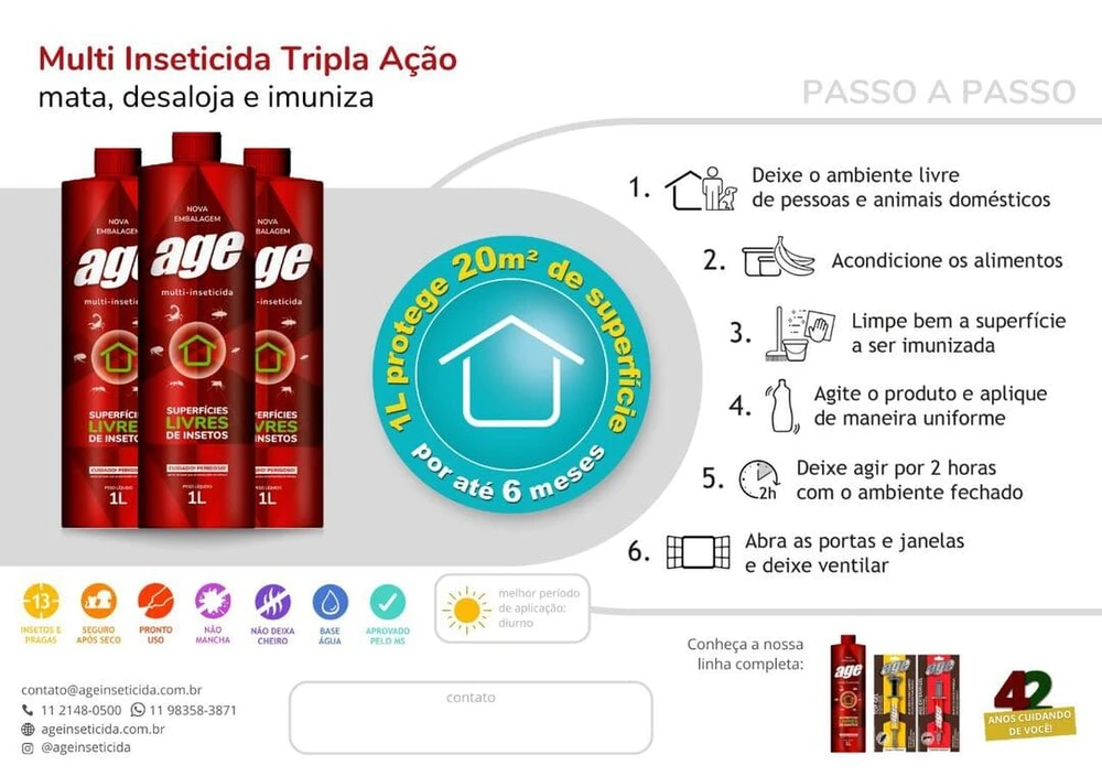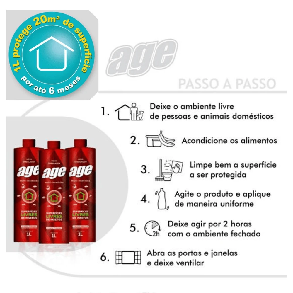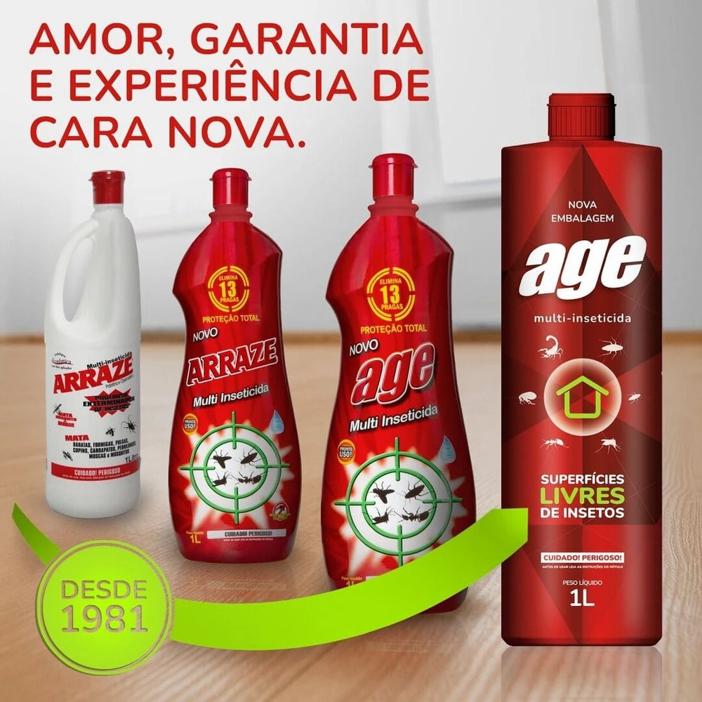 VENENO PARA BARATA E PRAGAS AGE 1L - Dedetizador e Inseticida 3x mais potente! Os produtos Arraze mudaram para Age. Leva água na formulação, portanto é menos agressivo que os tradicionais de mercado. Quase não tem cheiro. Ideal para áreas internas de residências, escolas e comércios em geral.