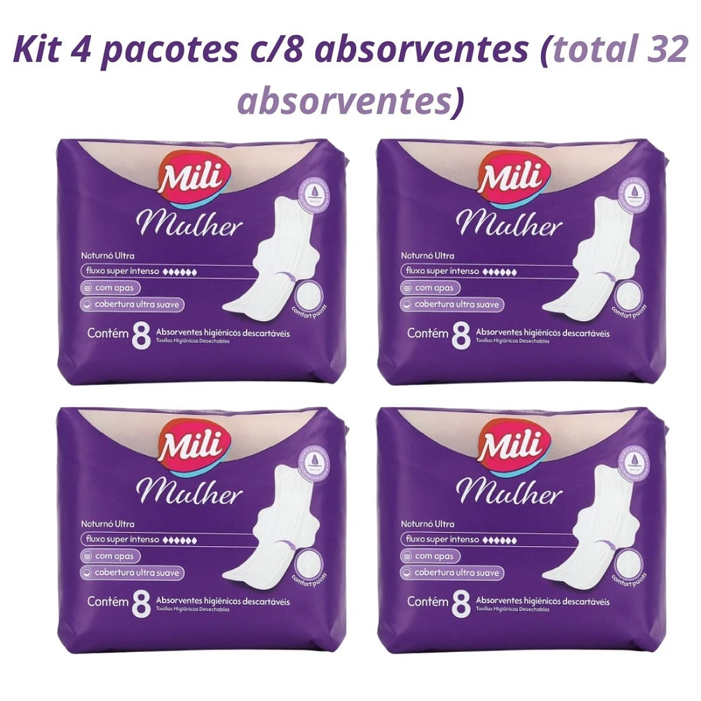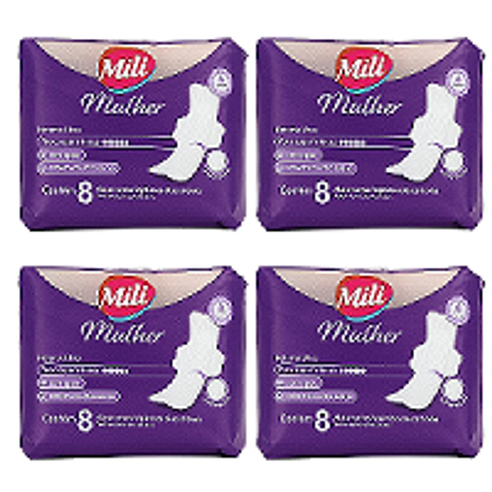 Absorvente Mili Mulher Noturno Ultra c/ abas 4 pacotes c/ 8 Unidades (total: 32 absorventes)