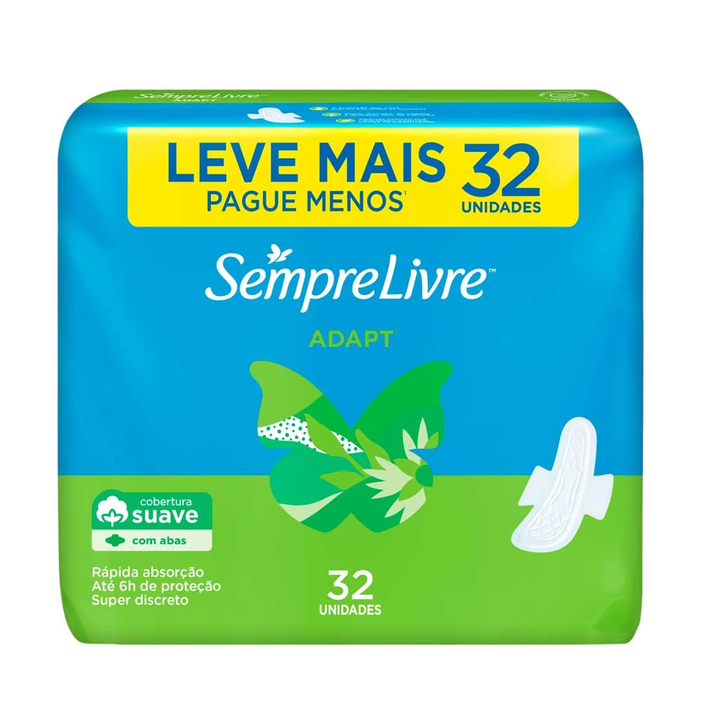 ABSORVENTE SEMPRE LIVRE COM 32UN COM ABAS ADAPT SUAVE LEVE MAIS PAGUE MENOS