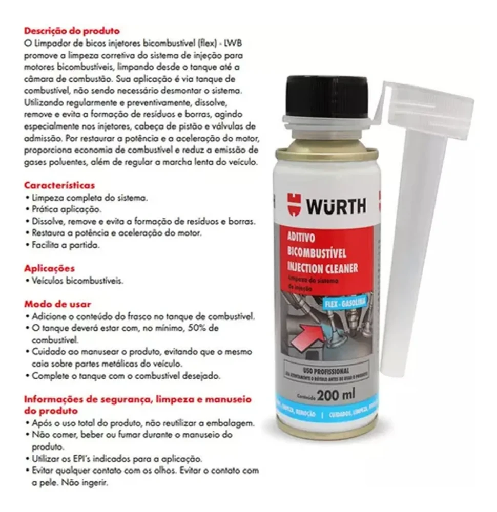 - Limpa desde o tanque de combustível até a câmara de combustão;