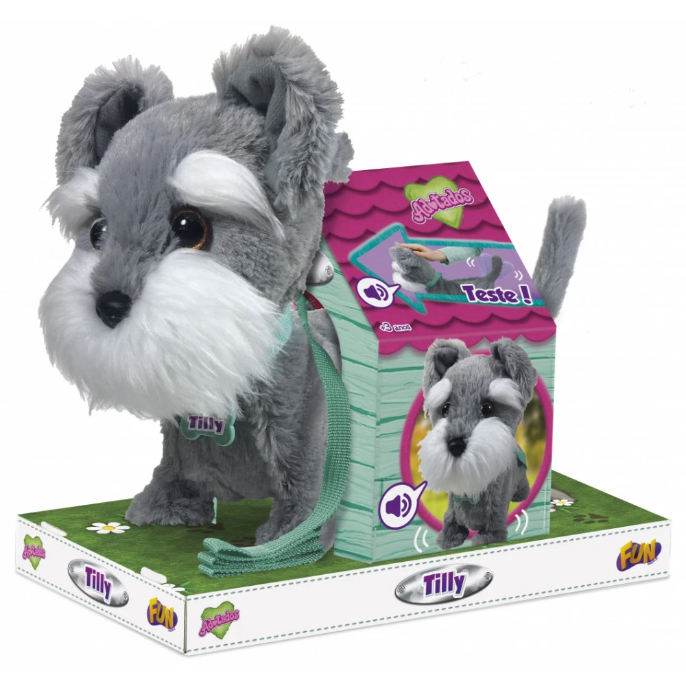 Gosta de cachorros? Então o AdotadosTerrier da Fun Divirta-se foi feito para você! Cheio de charme, ele é um alegre e divertido cãozinho de raça que vai ganhar seu coração! Ele anda, mexe e remexe, late, abana o rabinho e vai com você para todos os lugares na coleira. Pressione a cabeça para que seu Adotados Terrier da Fun Divirta-se e comece a caminhar ao seu lado. Ele vai virar o seu melhor amigo!