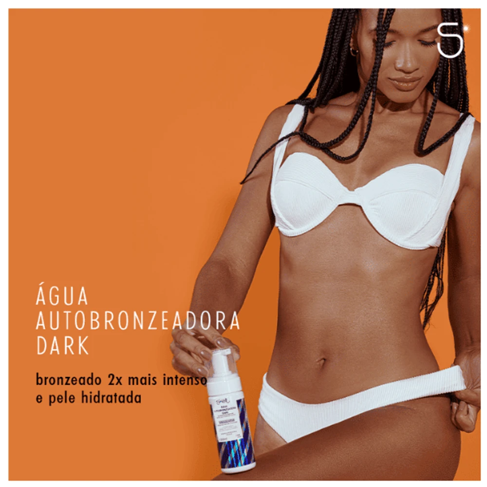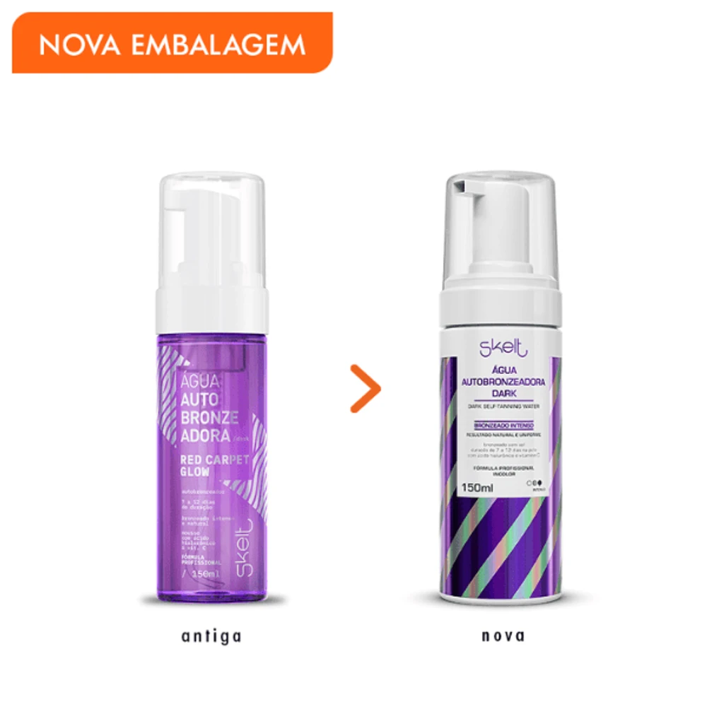 A Água Autobronzeadora Skelt 150ml Dark é ideal para quem deseja um bronzeado escuro e natural, com a praticidade de uma aplicação rápida e fácil, garantindo uma pele hidratada e radiante o ano todo, sem necessidade de sol.
