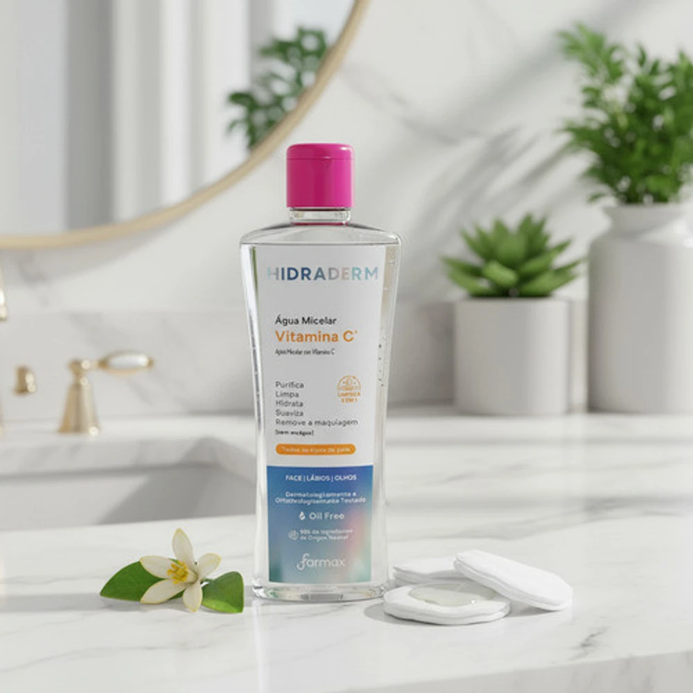 Palavras-chave: água micelar vitamina C, água micelar para rosto, limpeza facial, água micelar natural, água micelar hidratante, remove maquiagem.