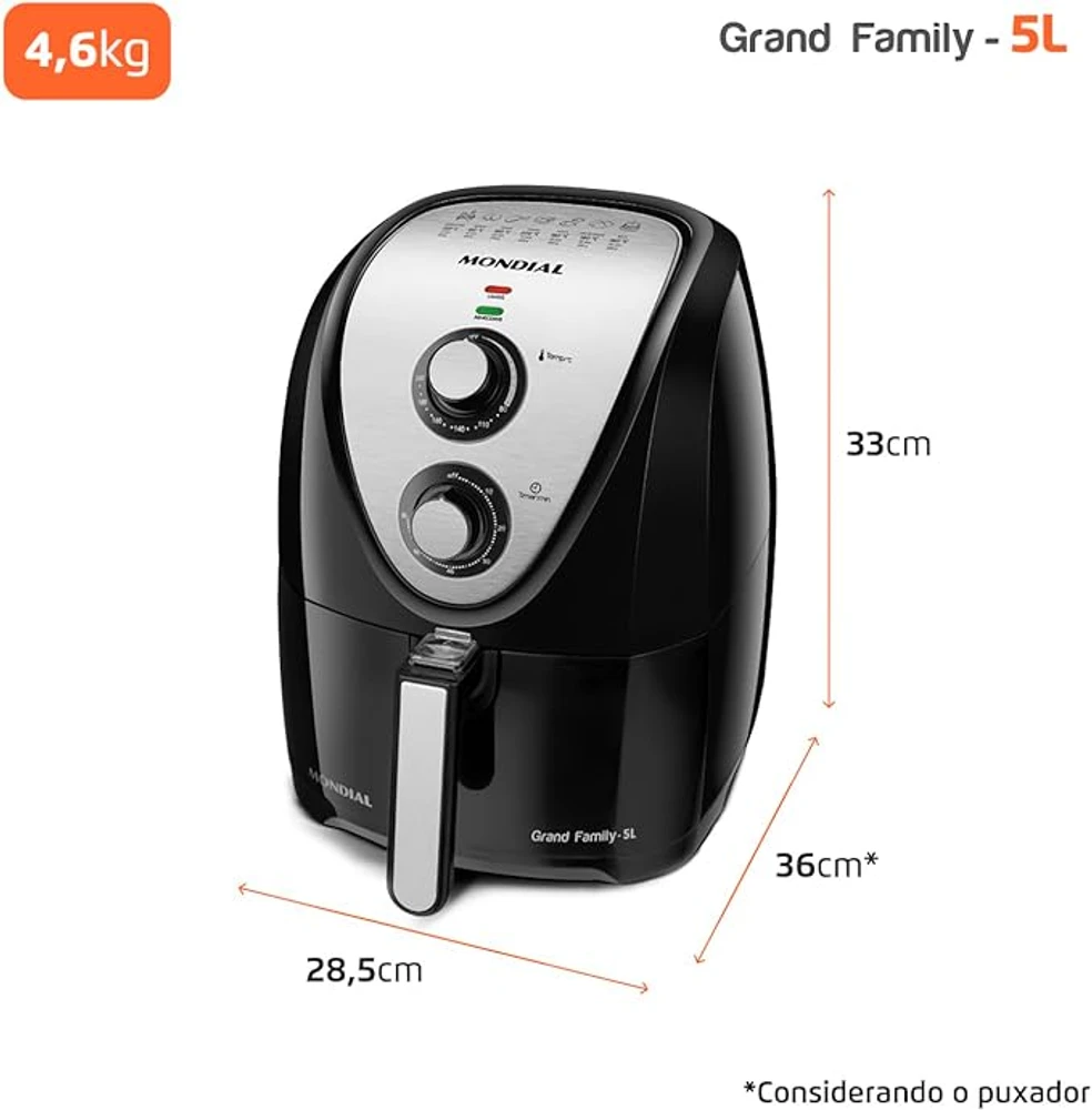 A Air Fryer Mondial pode levar praticidade e alimentação saudável para a sua rotina diária. E, com o cesto com capacidade de 5 litros, você pode compartilhar esses benefícios com toda a sua família! A Tecnologia de Circulação de Ar Quente cozinha, frita (a ar), assa ou tosta os alimentos sem precisar adicionar óleo ou manteiga. Aliada à alta potência, a tecnologia da Fritadeira a Ar também possibilita rapidez nos preparos.