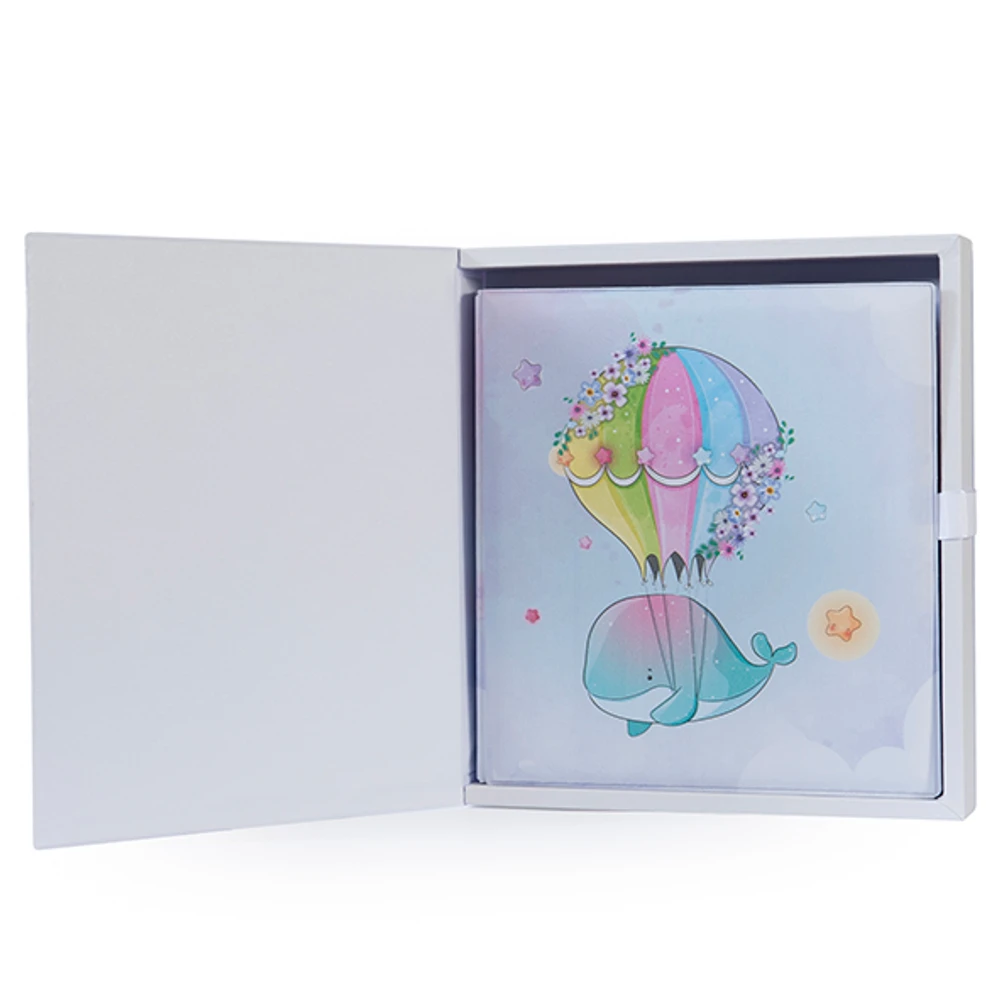 ÁLBUM DE FOTOS COM ESTOJO PARA BEBÊ 15X21/20X25 - Baleia com balões