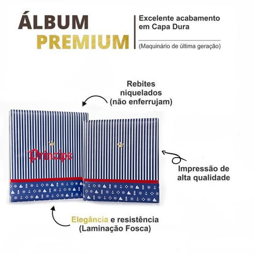 ÁLBUM DE FOTOS COM ESTOJO PARA BEBÊ 15X21/20X25 - BORDADO LUXO MARINHEIRO