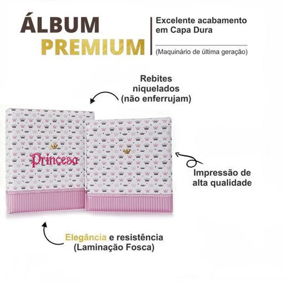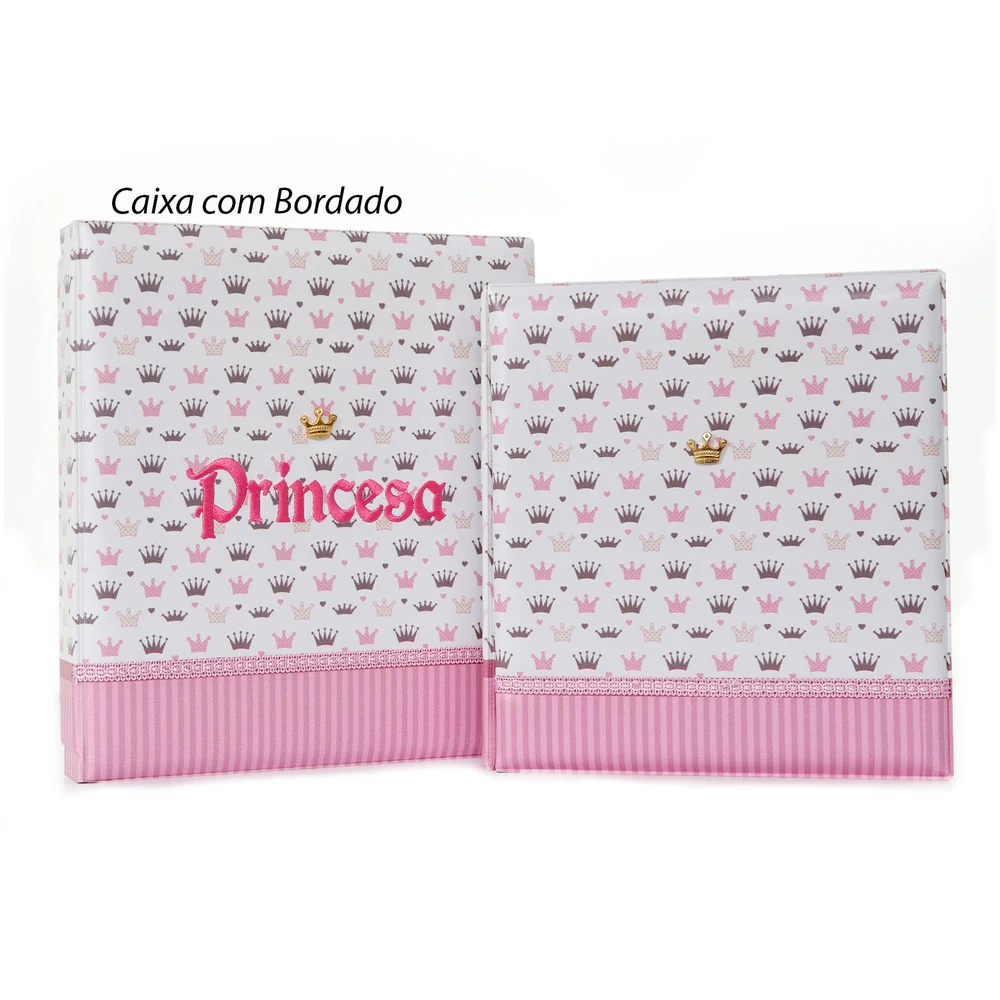 ÁLBUM DE FOTOS COM ESTOJO PARA BEBÊ 15X21/20X25 - BORDADO LUXO MENINA ROSA