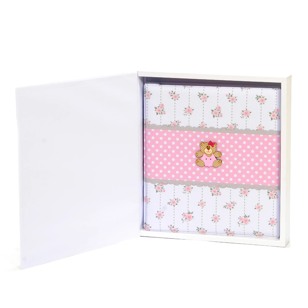 ÁLBUM PARA OS PRIMEIROS 12 MESES DO BEBÊ COM CAIXA BORDADA.