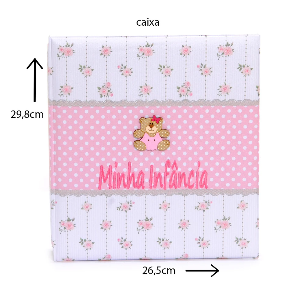 Álbum: 25cm x 26,5cm x 3cm (largura, comprimento, altura).