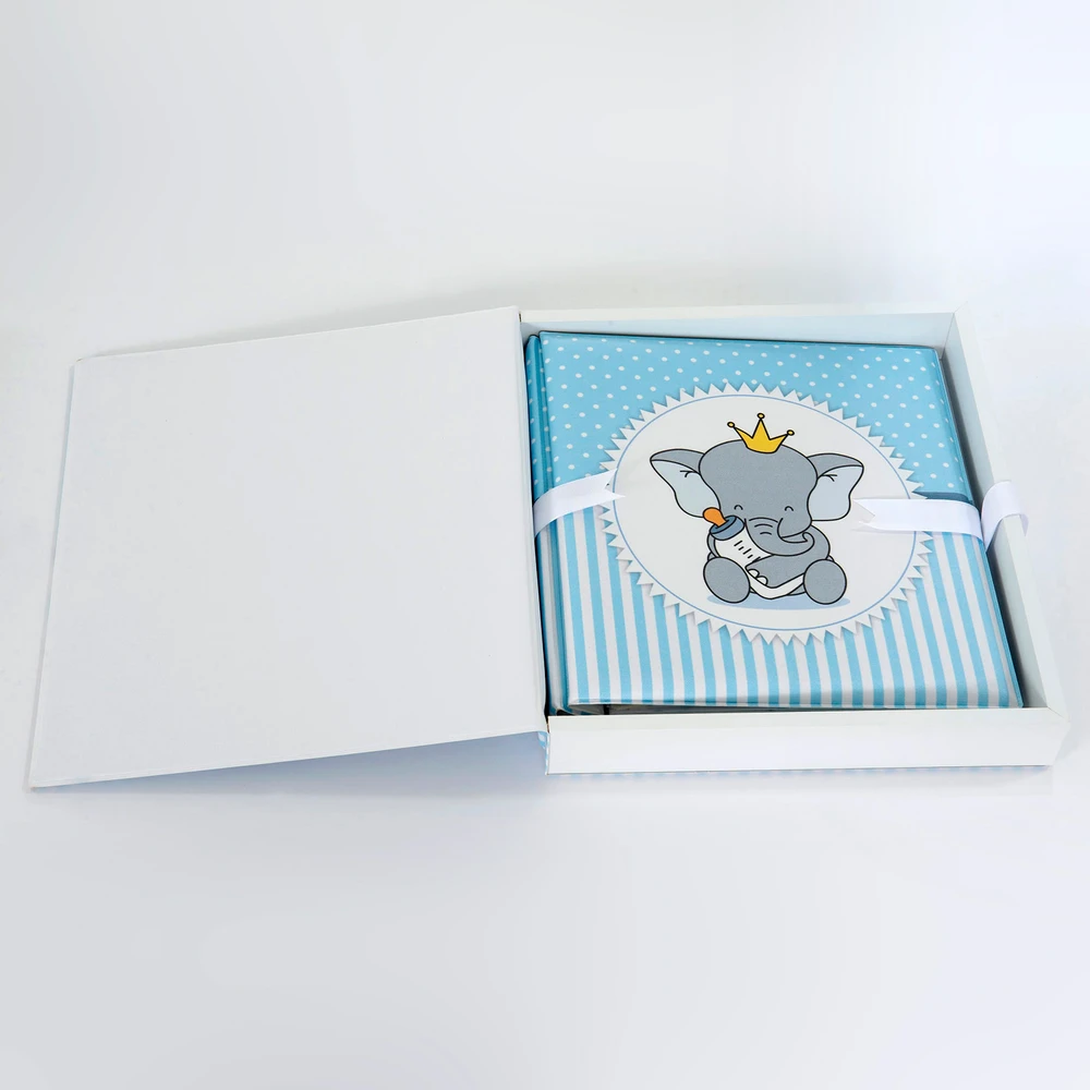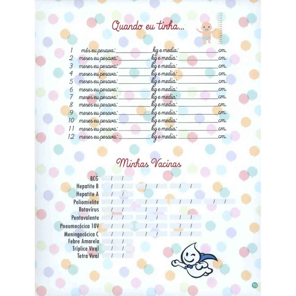 O álbum acompanha folhas de diário do bebê para você registrar os melhores momentos.