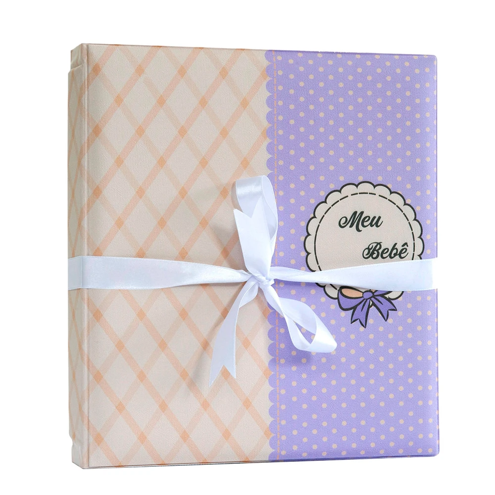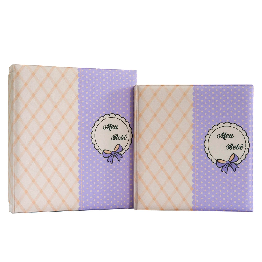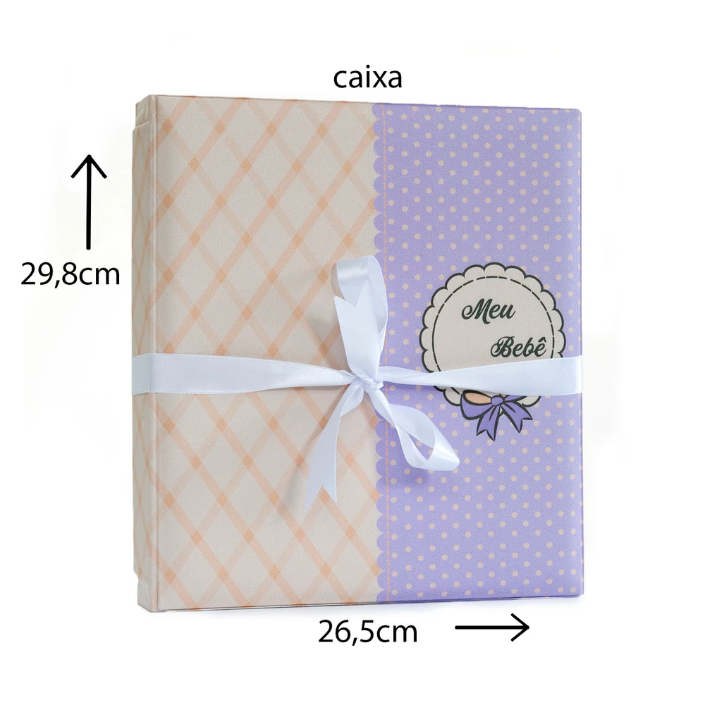 ÁLBUM DE FOTOS COM ESTOJO PARA BEBÊ 15X21/20X25 - MENINA LILÁS LUXO