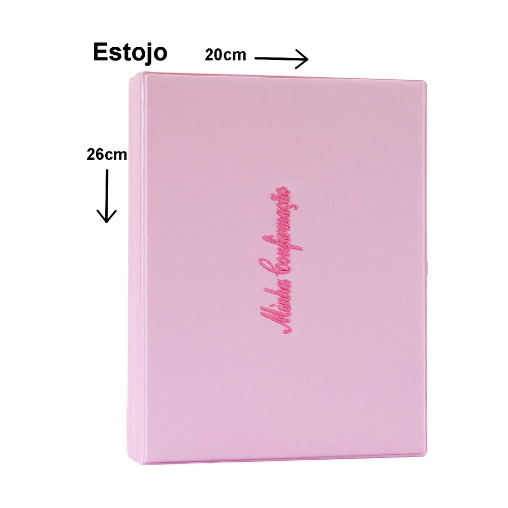 Estojo: 20cm x 26cm x 5cm (largura, altura, profundidade).