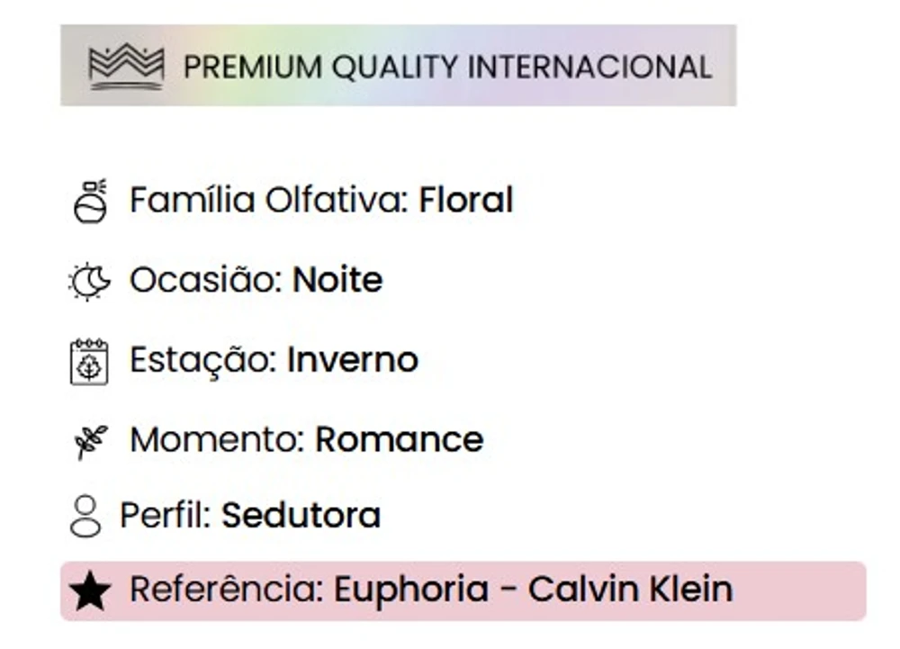 AMAKHA EUPHORIC FEM é a escolha certa para quem busca um perfume que traduz feminilidade e charme, conquistando elogios e deixando uma impressão memorável. Garanta sua experiência olfativa única com um produto que une qualidade premium e personalidade marcante.