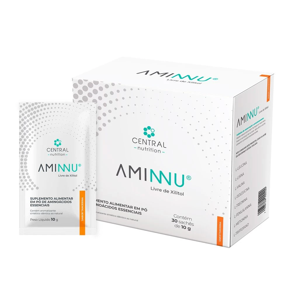 Aminnu Sem Xilitol Central Nutrition Sabor Tangerina 10g - Caixa com 30 Sachês