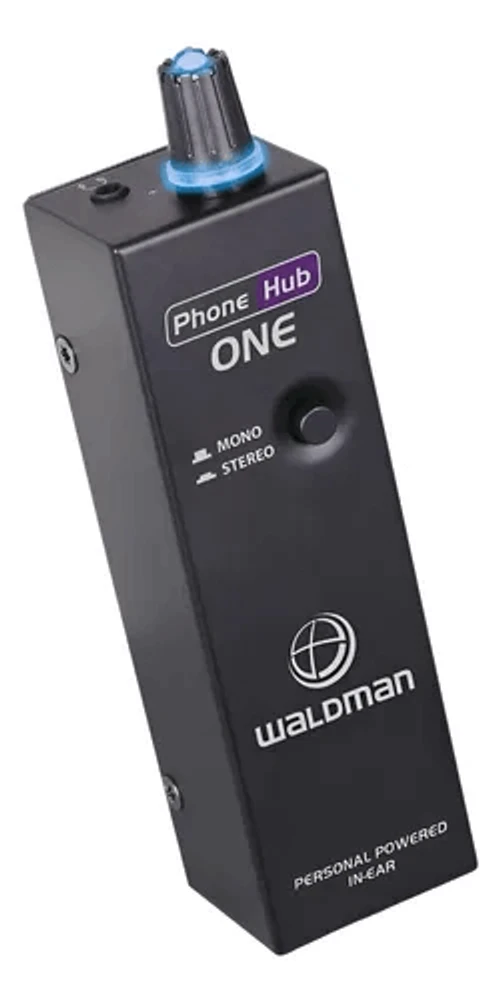 O Waldman PH-1 (PhoneHub One) é um amplificador/monitor pessoal para fones (bodypack) compacto e portátil, projetado para permitir monitoramento individual por músicos, técnicos e uso em estúdio. Recebe sinais por entradas combinadas (XLR/TRS), amplifica e entrega saída P2 (3,5 mm) para fones in-ear ou supra-auriculares, com controle de nível e indicação de status de bateria.