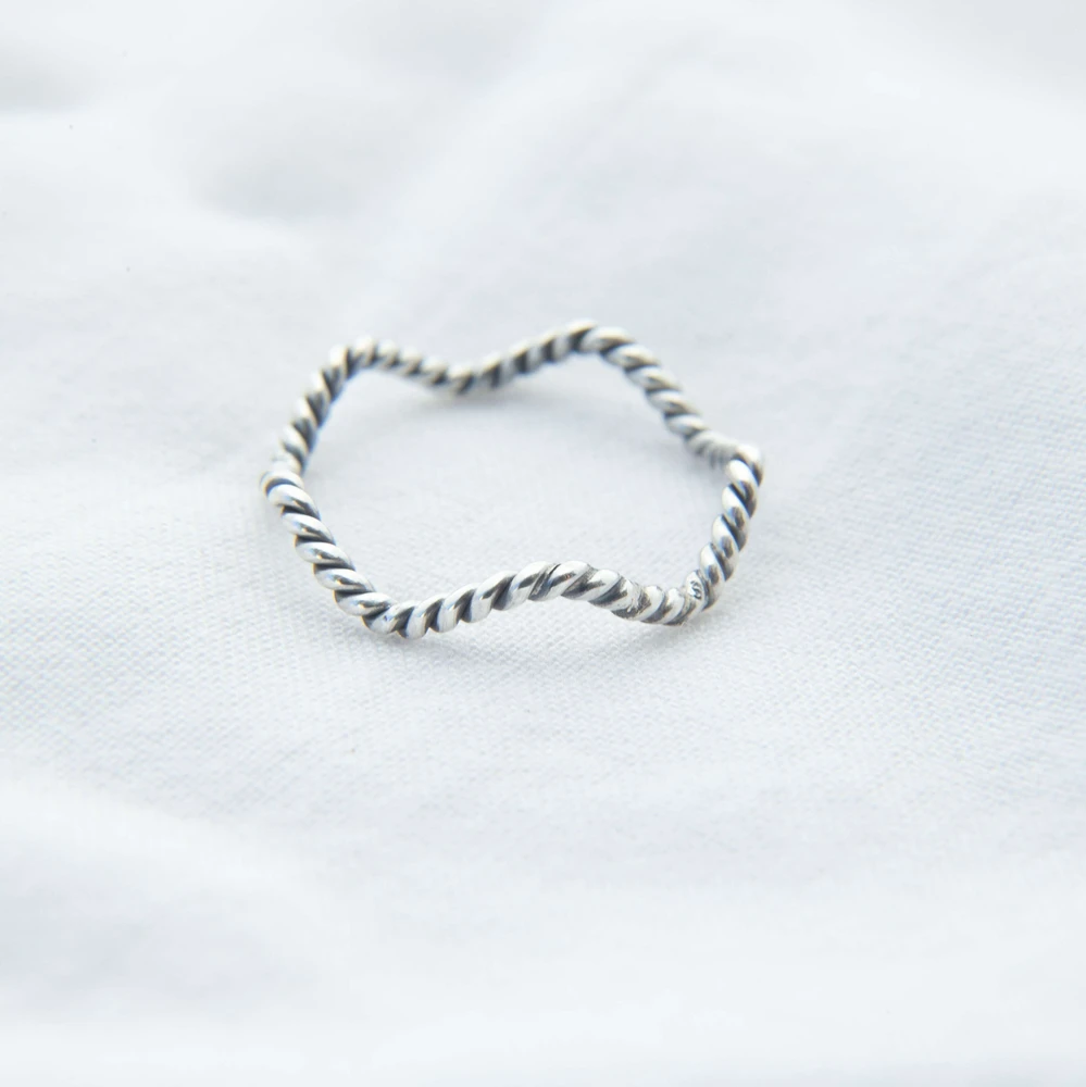 Anel minimalista de Prata 950, com fio torcido, detalhe envelhecido.