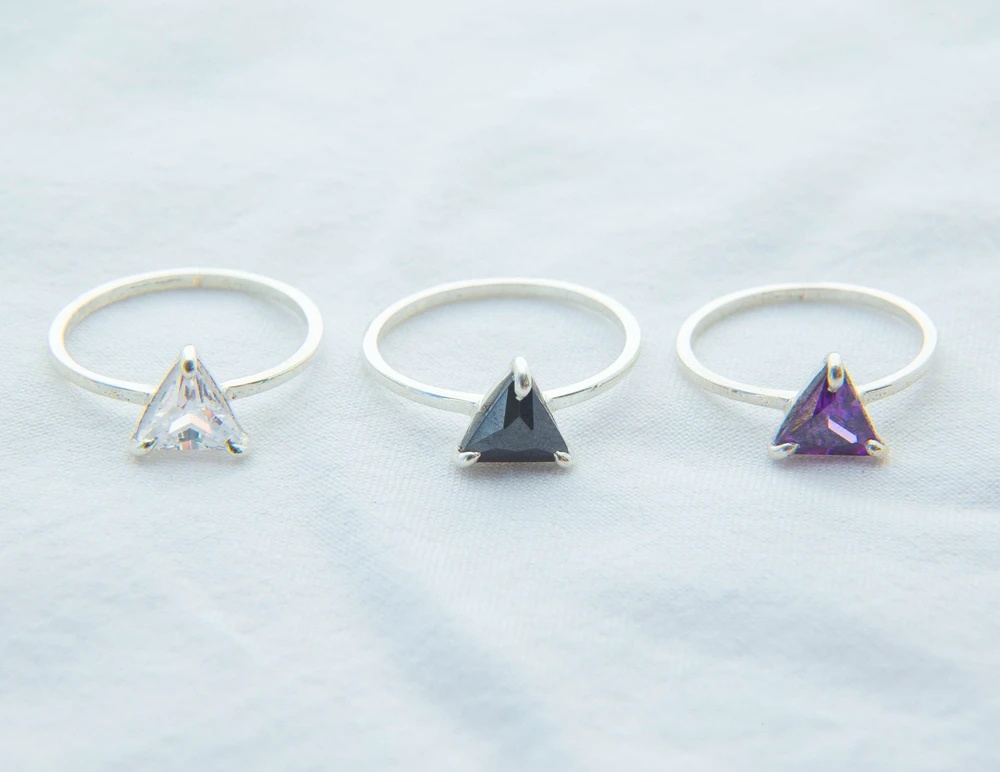 Anel de Prata 950, com pedra de Zircônia triangular 7mm