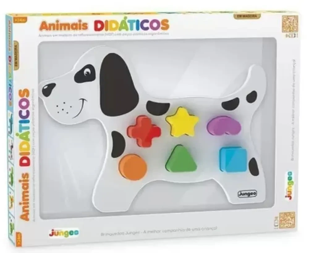 Com o Animais Didáticos Cão Junges, a brincadeira se transforma em aprendizado, desenvolvendo habilidades cognitivas e motoras enquanto a criança se diverte com cores e formas!