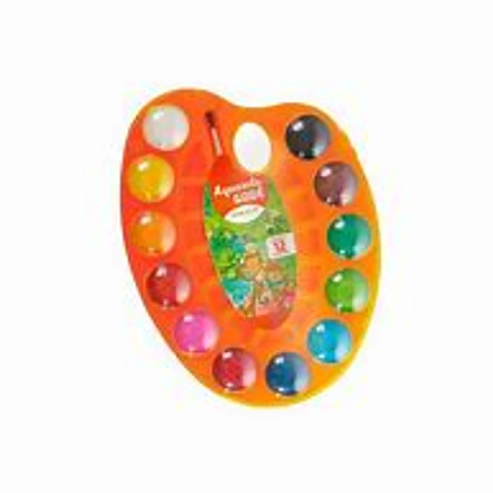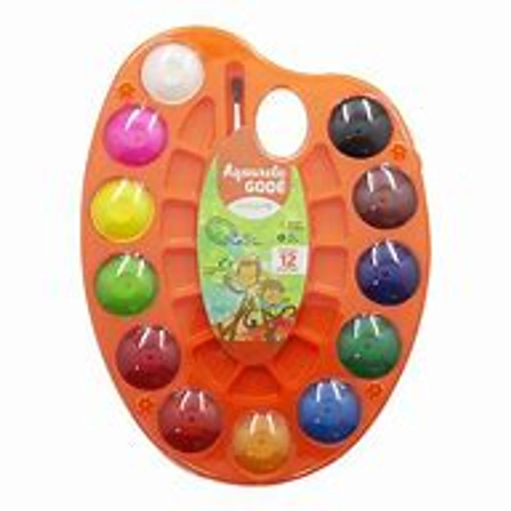 A Aquarela Godê possui 12 cores vibrantes, tampa godê e espaço para posicionar o dedo durante o manuseio. Acompanha 1 pincel com cabo de madeira e cerdas naturais. Produto seguro e certificado pelo Inmetro.