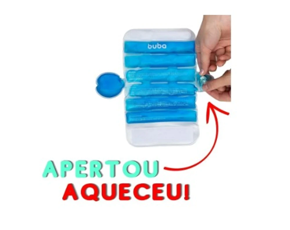 Ficha técnica: Bolsa térmica, de plástico, preenchida com gel atóxico (95% acetato de sódio, 5% água purificada) em seu interior.