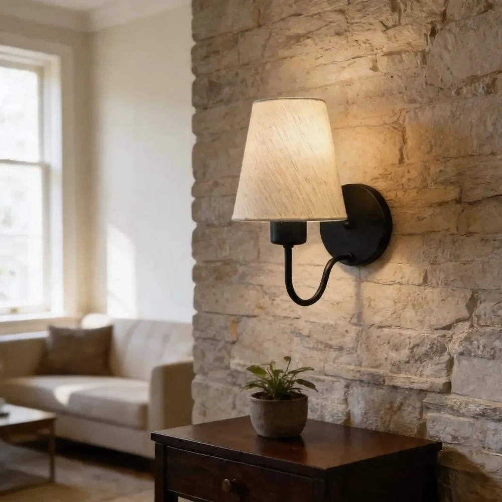 Arandela de Parede AR-2035PRLLA com Cúpula em Tecido Linho Bege – Iluminação Sofisticada e Funcional