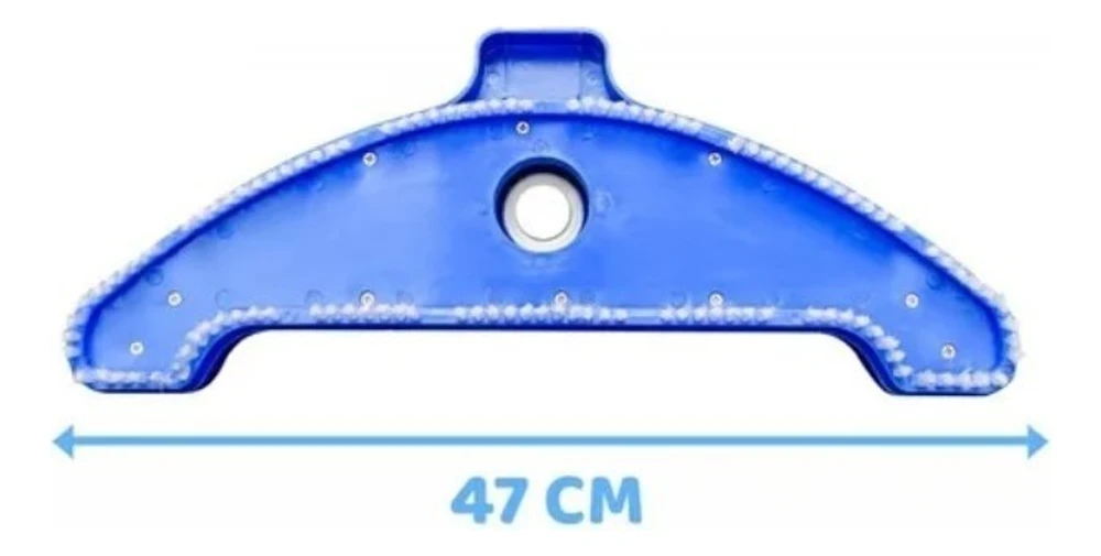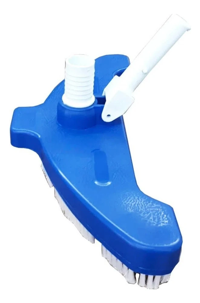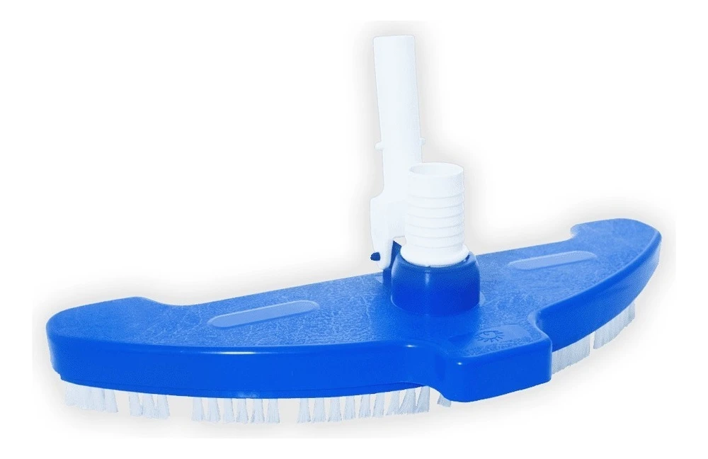 O aspirador Jumbo Com escovas possui a base envolvida por cerdas de nylon e é confeccionado em termoplásticos de alto padrão (abs).Além de promover a aspiração dos resíduos, escova o fundo da piscina auxiliando na eliminação de microrganismos e detritos mais espessos.Possui bocal de aspiração articulado, que facilita no manuseio da mangueira e engate prático para o cabo de alumínio (cabo não incluso).Devido as suas dimensões, o aspirador jumbo é indicado, principalmente, para piscinas de grande porte, olímpicas, ou de condomínios. CARACTERÍSTICASMedidas Alt x Larg (mm): 130 x 470Cor : AzulDiâmetro para Encaixe na Mangueira : 31,75 mmMaterial das Cerdas : NylonMaterial do Corpo : ABSPeso : 1,78 kgProteção UV