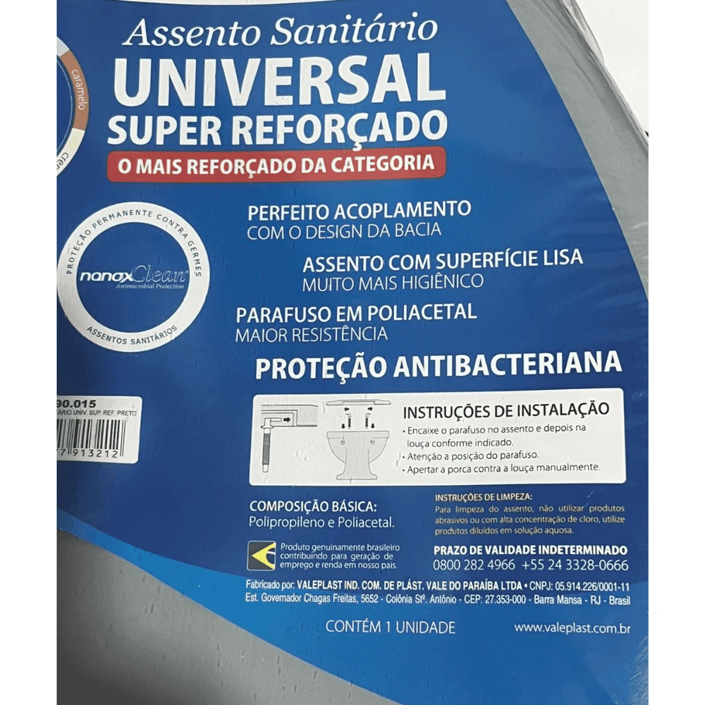 - Assento higiênico e antimicrobiano, não absorve a umidade do banheiro;