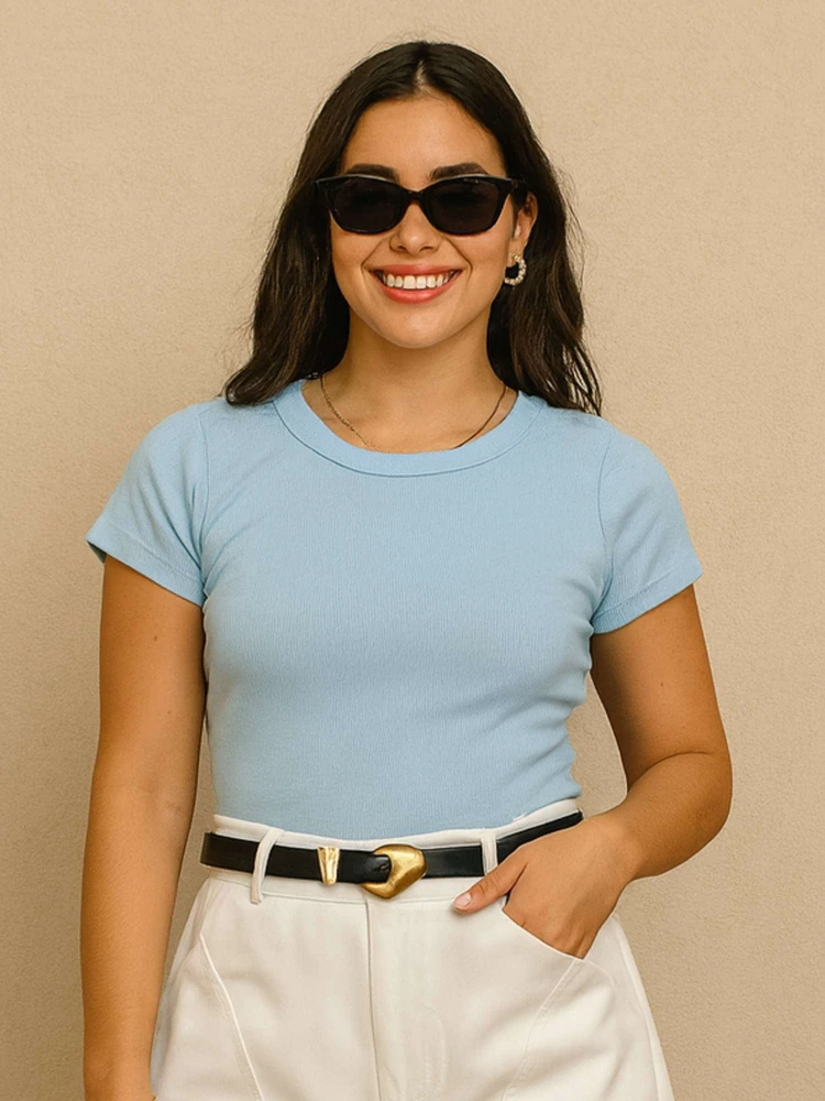 A Blusa Baby Look Canelada da Crocker Jeans é a peça curinga que não pode faltar no guarda-roupa. Com modelagem ajustada ao corpo, gola redonda e malha canelada de algodão com elastano, ela entrega conforto e estilo em qualquer composição.