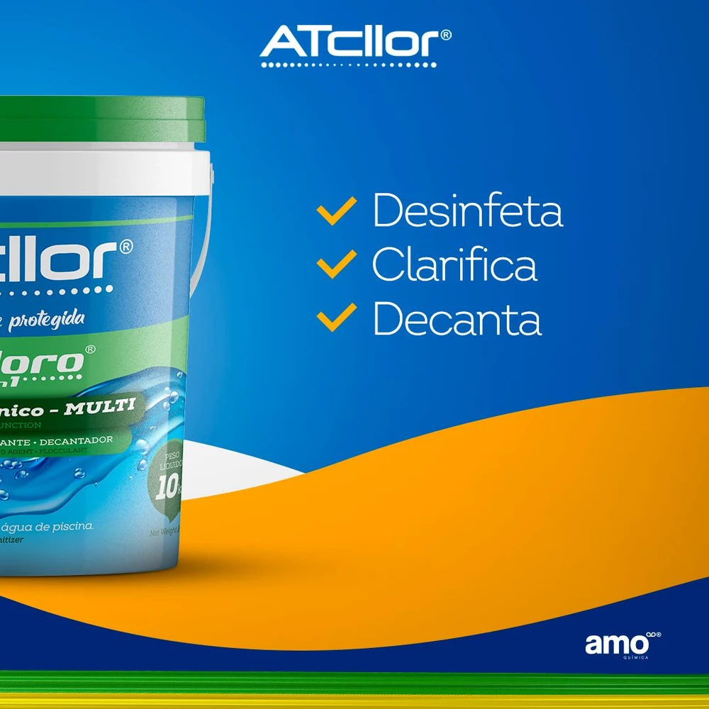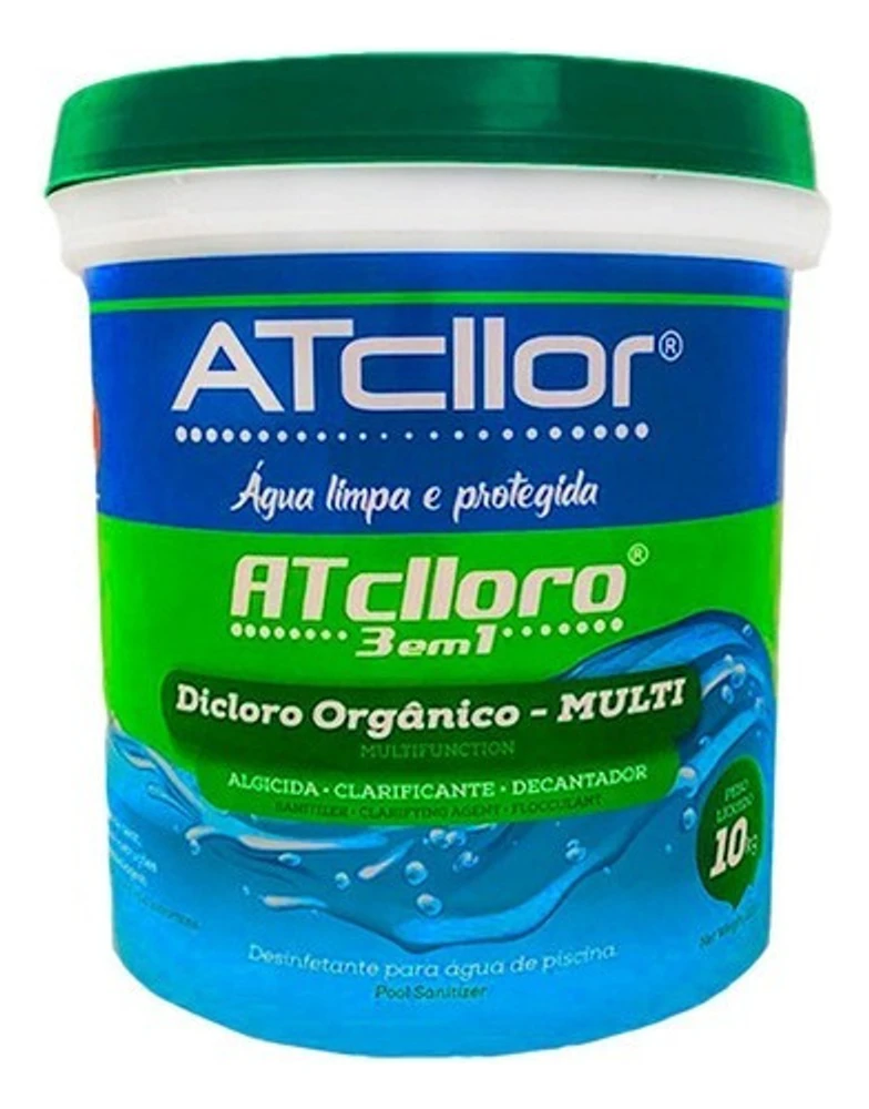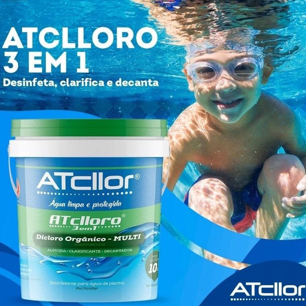 ATclloro 3 em 1 é utilizado em tratamento de águas de piscinas, tendo o poder desinfetante, destruindo os microrganismos.