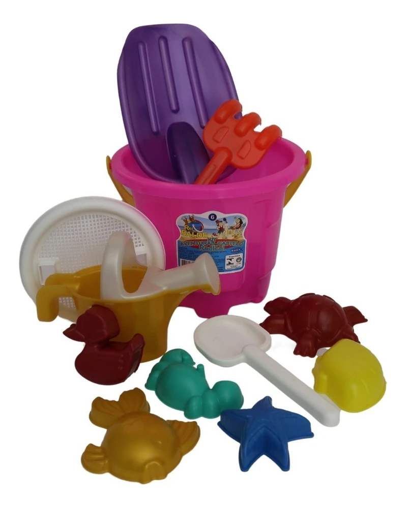 CORES SORTIDAS.BALDINHO DE PRAIA INFANTIL 12 ITENSUm verdadeiro sucesso com a criançada, esses baldinhos não podem faltar em brincadeiras, viagens à praia, atividades no parque e, também, na personalização de brindes em festinhas de aniversário.Além da brincadeira, contribui muito para o desenvolvimento e coordenação motora das crianças!!Itens inclusos no kit:01 Baldinho com alça;01 Peneirinha;01 Colher;01 Garfo;08 Forminhas.Dimensões Aprox.: 20 diâmetro x 20 altura.